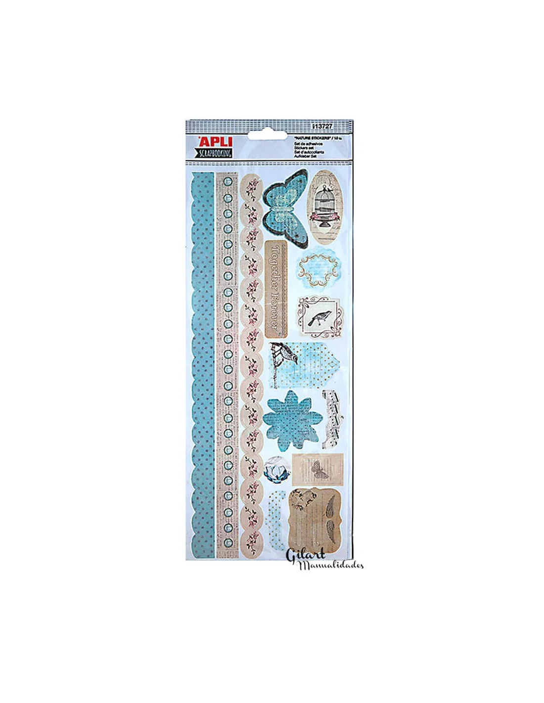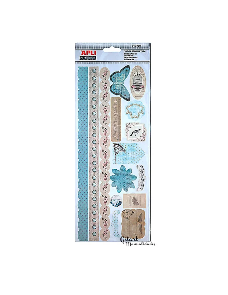 Stickers adhesivos Nature Apli para scrapbooking con 15 diseños inspirados en flora y fauna. Aportan frescura y armonía natural a álbumes, agendas y tarjetas con una adherencia fiable. Ideales para dar personalidad a cada proyecto creativo.