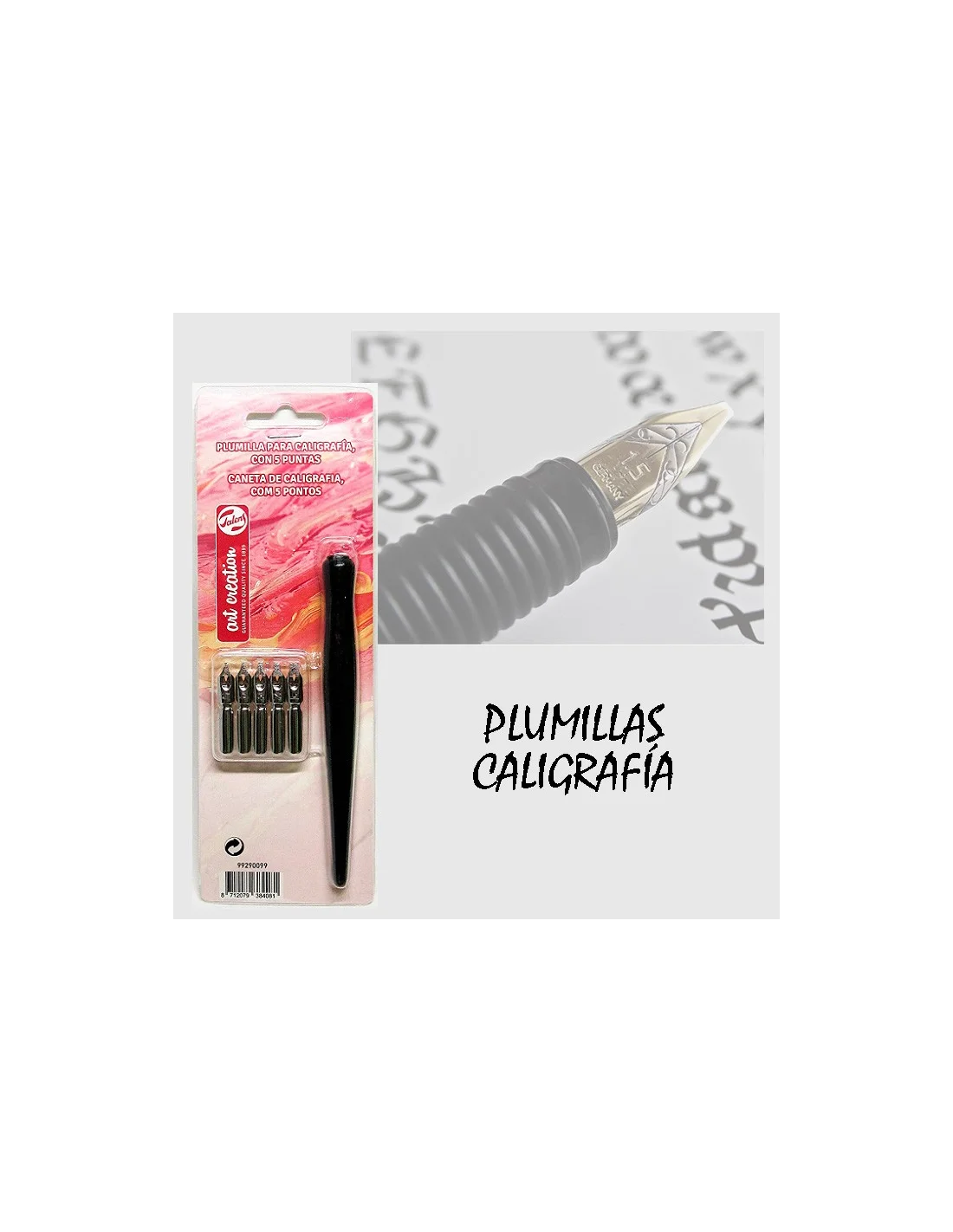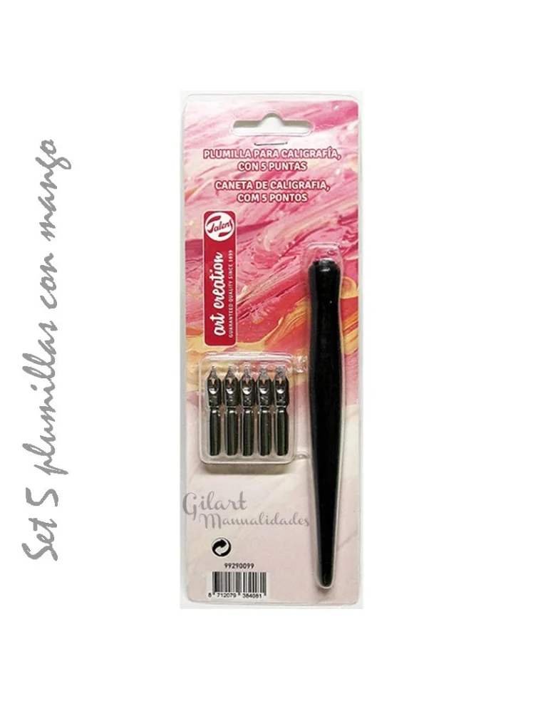 Mango con 5 plumillas de caligrafía Talens Art Creation, el set esencial para explorar el fascinante mundo de la escritura artística. Este kit te proporciona todo lo que necesitas para iniciarte y dominar las técnicas de caligrafía, permitiéndote crear letras elegantes y personalizadas en tus proyectos. Su diseño sencillo y su cómodo agarre lo hacen perfecto para largas sesiones de práctica.