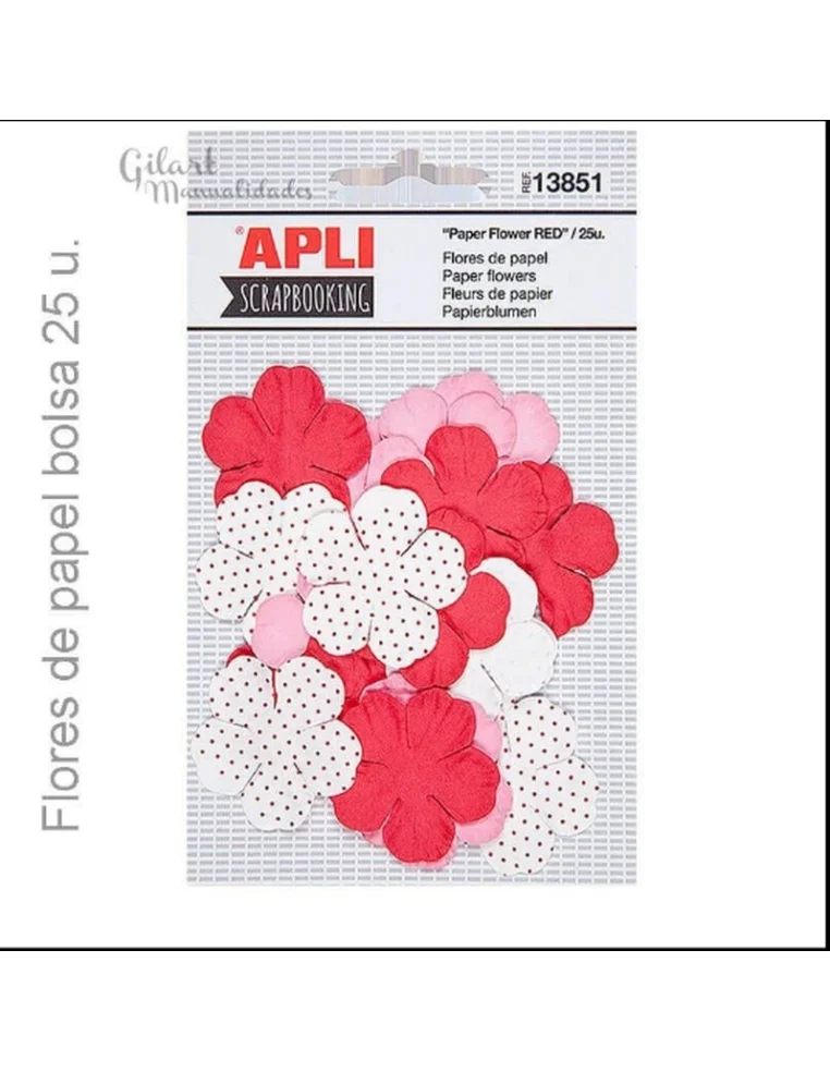 Set 25 Flores Papel Rojas Apli para Scrapbooking, Álbumes y Tarjetas