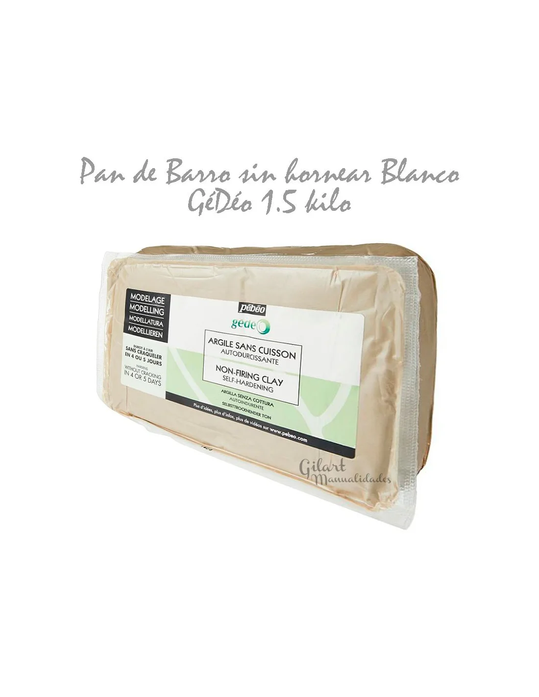 Arcilla Blanca Sin Cocción Gédéo Pébéo 1.5 kg para Modelado y Escultura