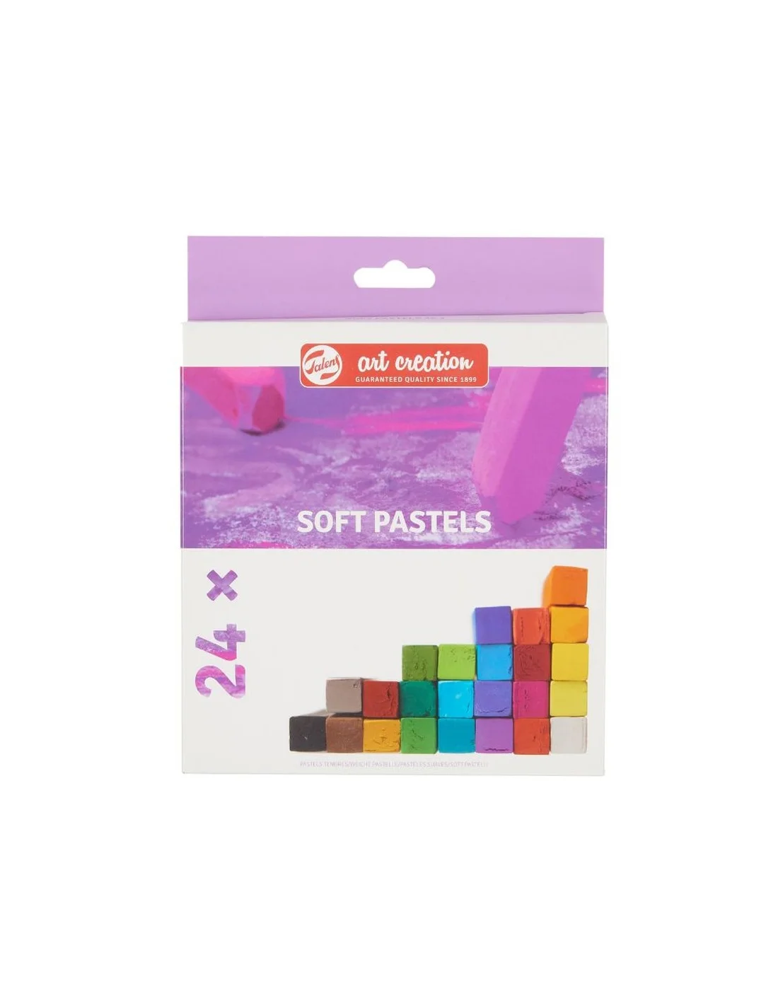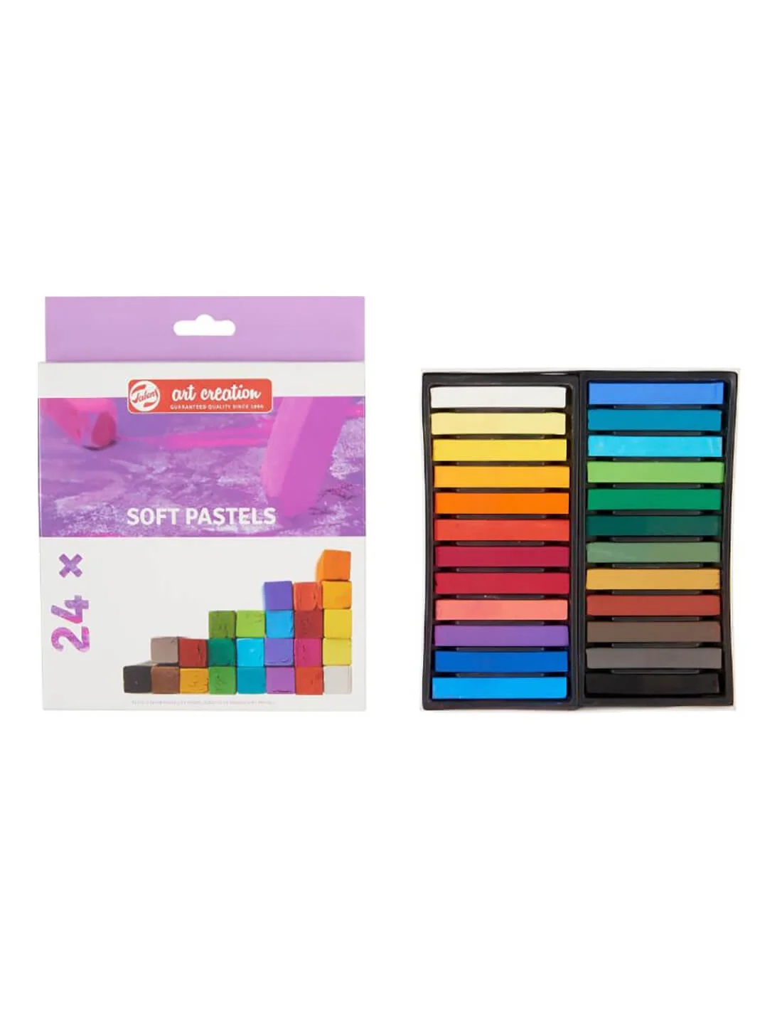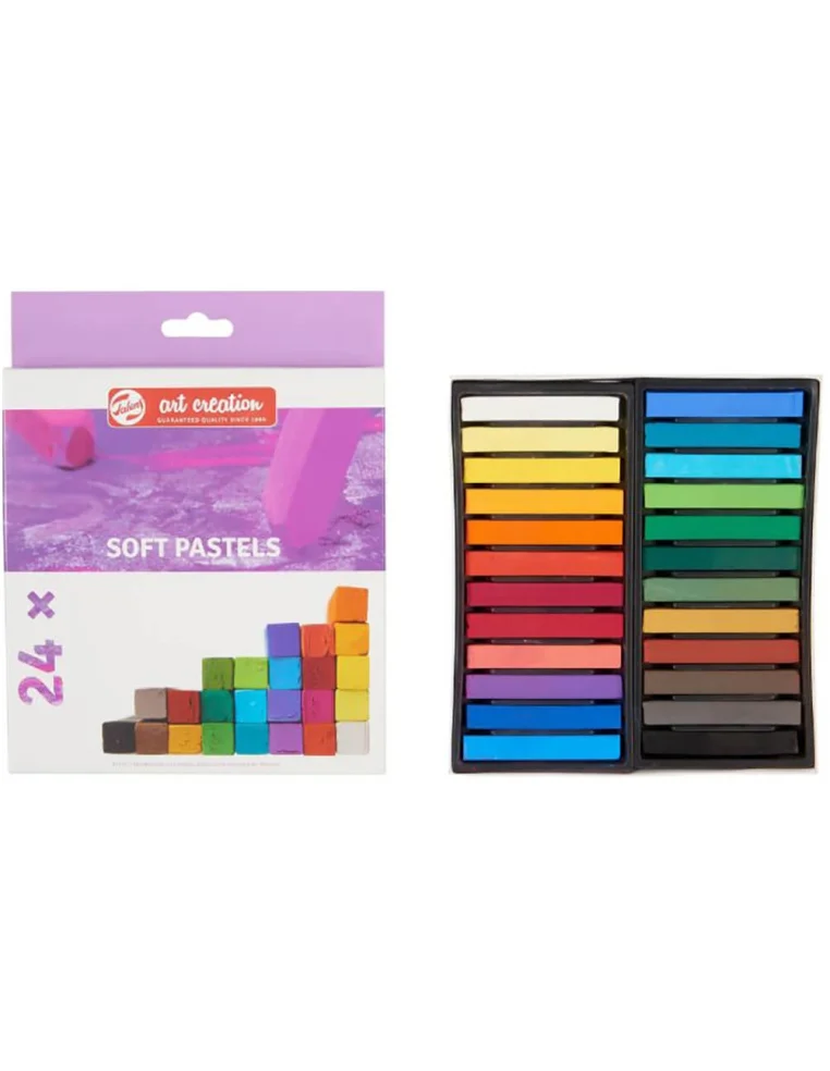 Set de 24 pasteles suaves Talens Art Creation con una amplia gama de colores vibrantes y textura aterciopelada. Su formulación permite crear obras artísticas con gran detalle y profundidad, siendo ideal para ilustradores y artistas que buscan calidad en sus trazos. Ofrecen una excelente transferencia de color y facilidad de mezcla sobre papel.