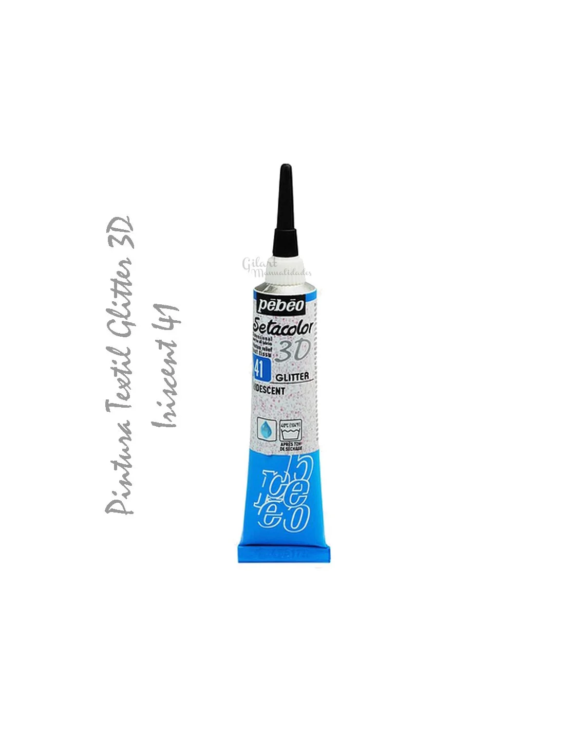 Pintura textil iriscent con efecto 3D y purpurina de la marca Pebeo, ideal para proyectos de manualidades y decoración de telas.