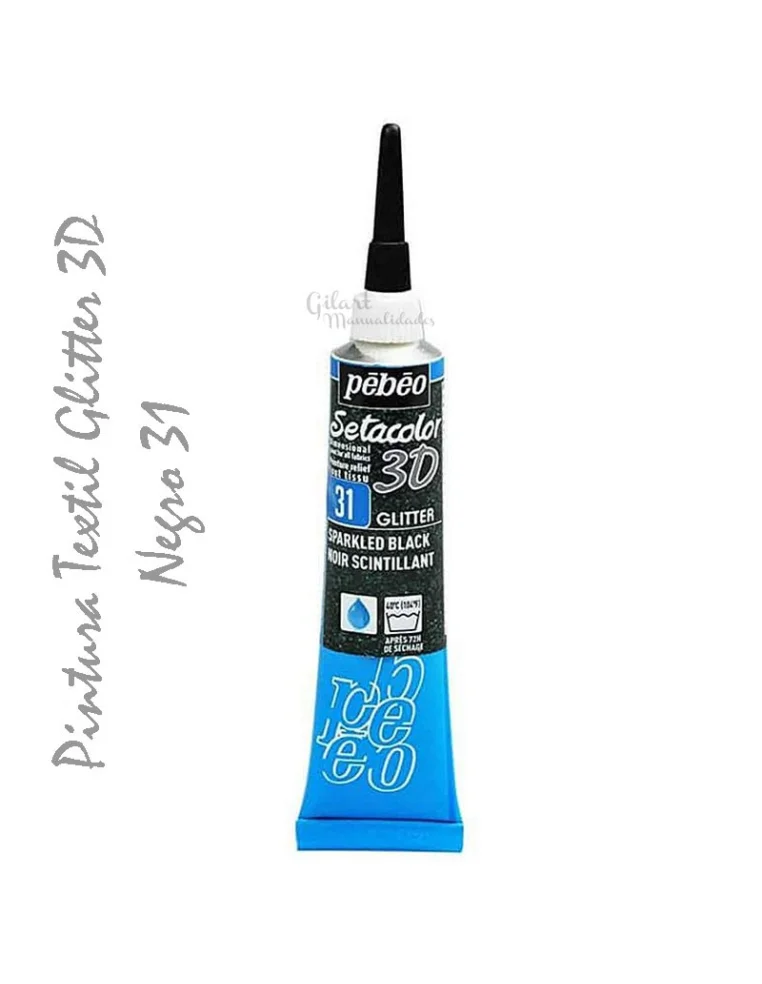 Pintura Textil Glitter 3D Pebeo 20 ml ofrece un efecto de relieve y brillo duradero en tus prendas. Se formula a base de agua, incluye una punta de precision ideal para decorar camisetas, bolsos y diversos textiles. Es una pintura flexible, resistente al lavado y compatible con la mayoría de tejidos para obtener resultados profesionales.