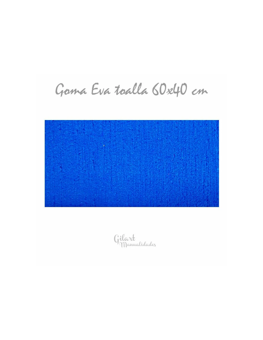 Goma Eva toalla 60x40 cm. Textura suave y colores vibrantes para proyectos escolares, disfraces y manualidades detalladas. Material flexible, atóxico y reciclable, ideal para niños y adultos con acabados profesionales y creatividad sin límites en cada proyecto.