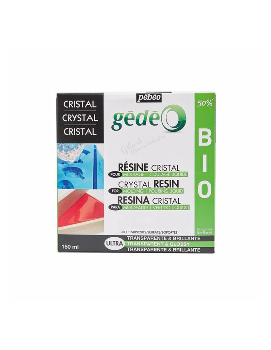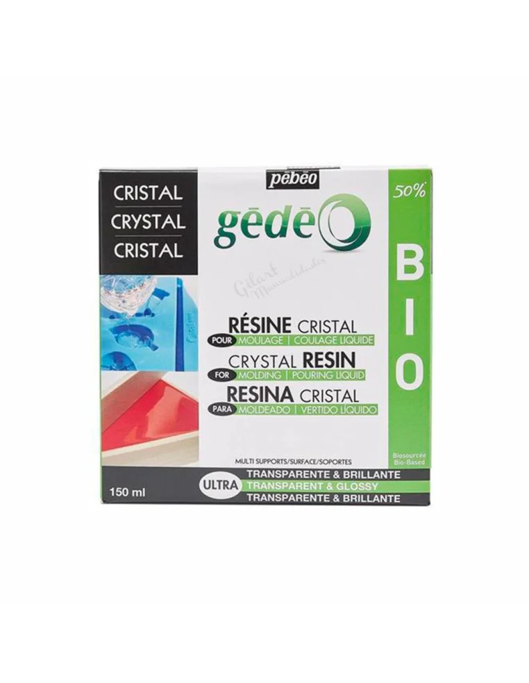 Caja del Kit Resina Epoxi Cristal Pebeo Gedeo 150 ml con sello 50% Bio.