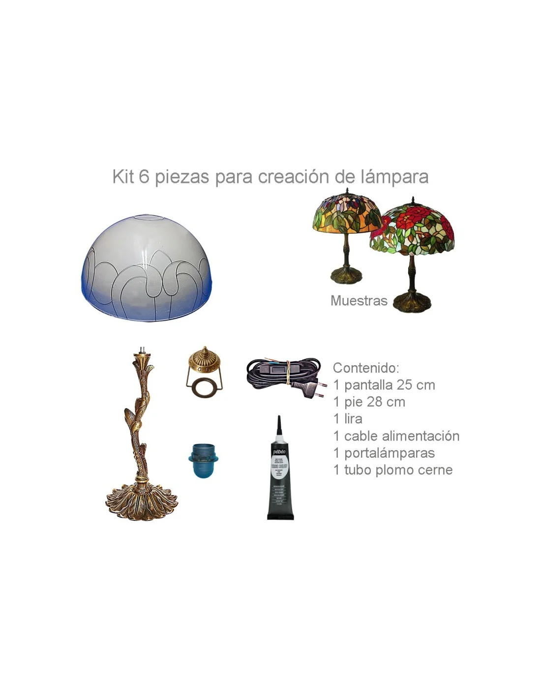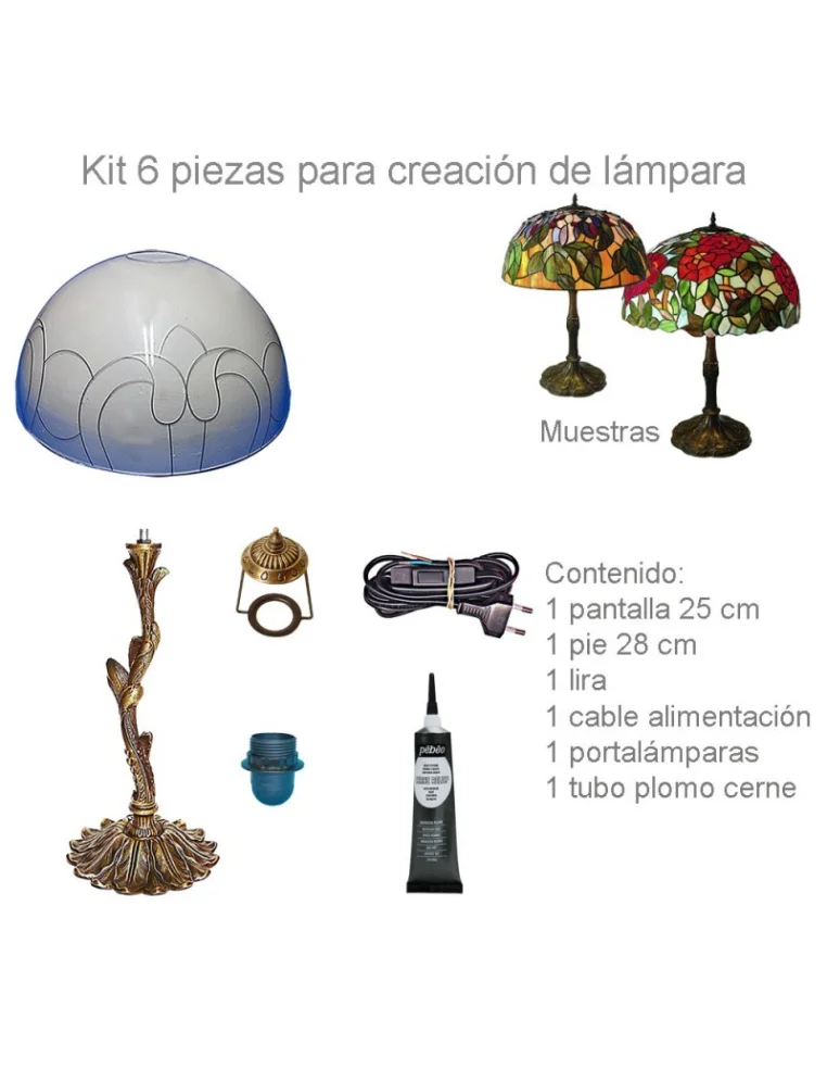 Compatible con pinturas para vidrio, resinas y otros materiales para personalizar tu diseño. Su pie en forma de árbol con acabado bronce envejecido y el diseño de ornamento en la pantalla aportan un toque clásico y sofisticado, haciendo de esta lámpara el centro de atención en cualquier habitación, desde salones hasta dormitorios o estudios. Ahorra con este completo kit y disfruta de la satisfacción de crear algo único con tus propias manos. ¡Ilumina tu vida con arte! 🏡