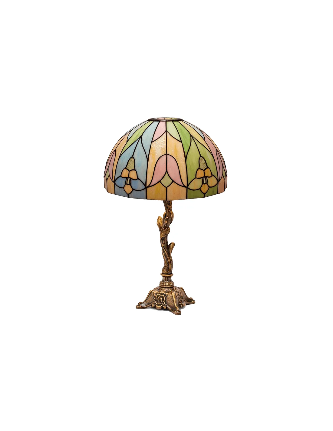 Kit Lámpara Tiffany Metacrilato Tulipanes Flores con Pie Bronce Árbol 31 cm