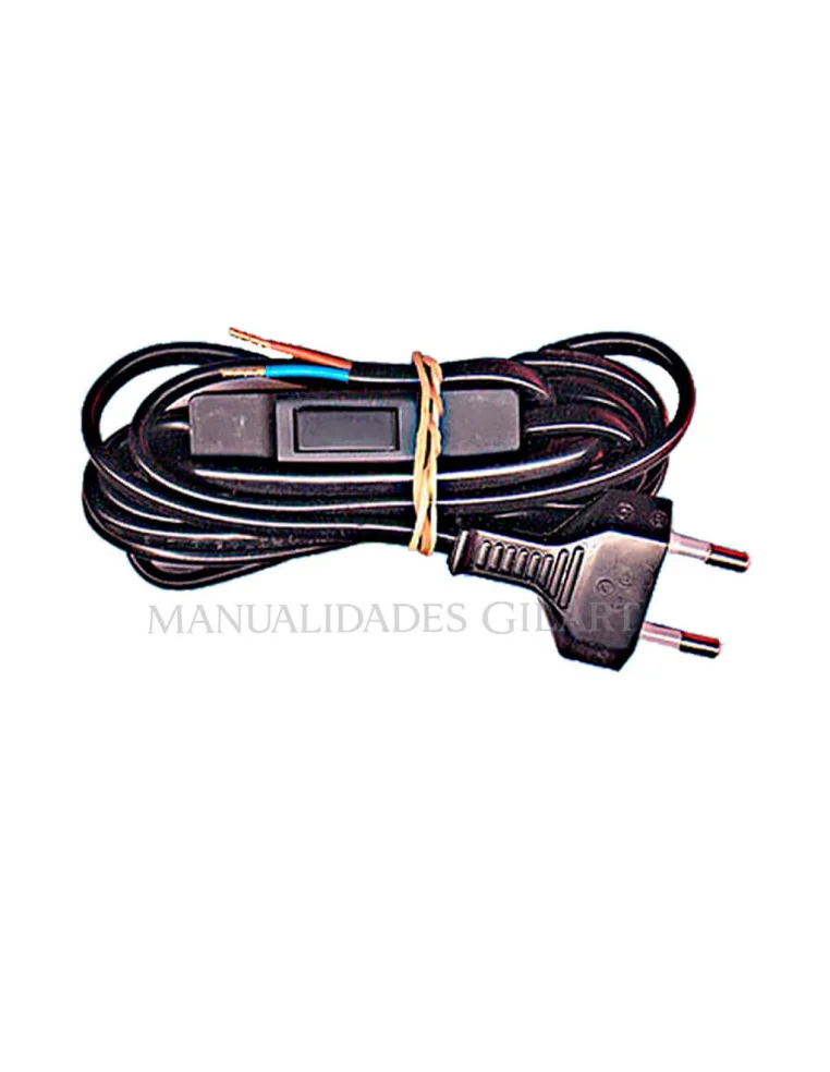 Cable de alimentación negro de 2 metros con clavija e interruptor integrado. Diseñado para montaje y reparación de lámparas, este cable ofrece una solución segura, funcional y estética para proyectos de iluminación DIY. Su longitud de 2 m proporciona flexibilidad para instalar luminarias en cualquier estancia con total comodidad.