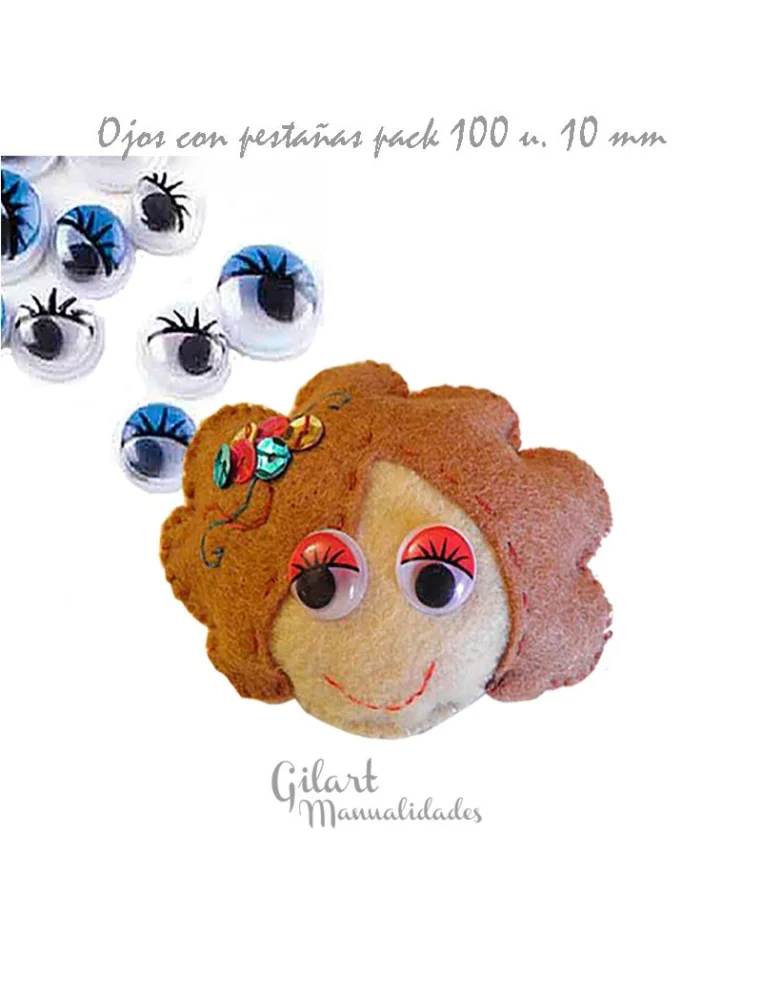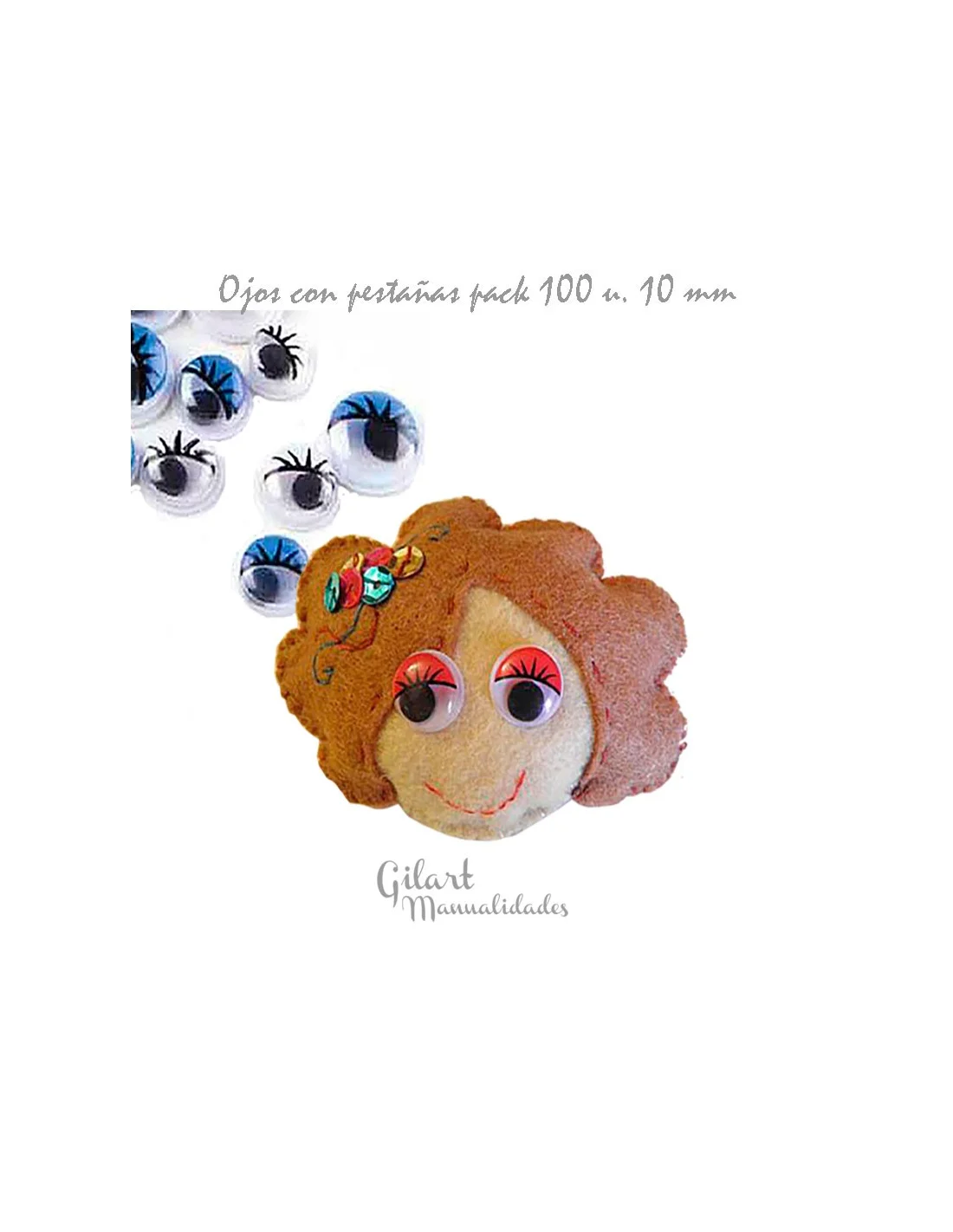 Ojos móviles redondos de 10 mm con pestañas – bolsa 100 unidades
