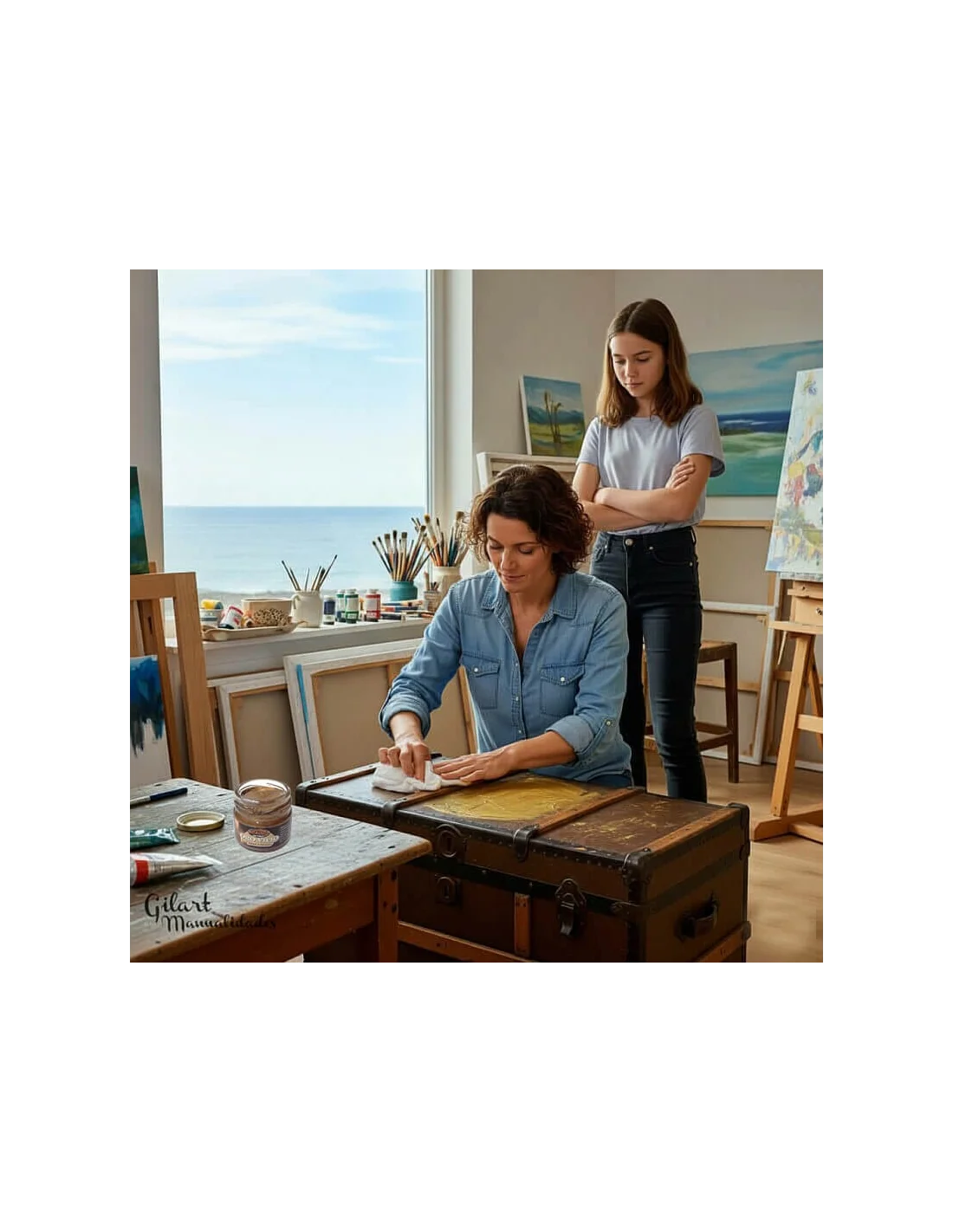 Cera Crema Kokolo Oro Viejo 25 cc ofrece un acabado dorado brillante y uniforme que imita perfectamente el pan de oro tradicional en múltiples superficies. Su textura cremosa permite una aplicación fácil con pincel o dedos, adaptándose perfectamente a madera, resina, yeso, cartón y metal. Ideal para restaurar muebles antiguos, marcos de cuadros, figuras decorativas o crear efectos envejecidos combinando con betún de Judea o pátinas sin necesidad de sellador previo. Su brillo rico y tonalidad cálida aporta un toque lujoso y sofisticado de manera práctica y económica. Tanto principiantes como expertos lograrán resultados espectaculares que transforman piezas comunes en obras de arte distinguidas. Consigue ese acabado profesional que eleva el valor percibido de tus proyectos y añade un toque histórico y elegante que perdurará en el tiempo con esta cera versátil y de alta calidad. ✨