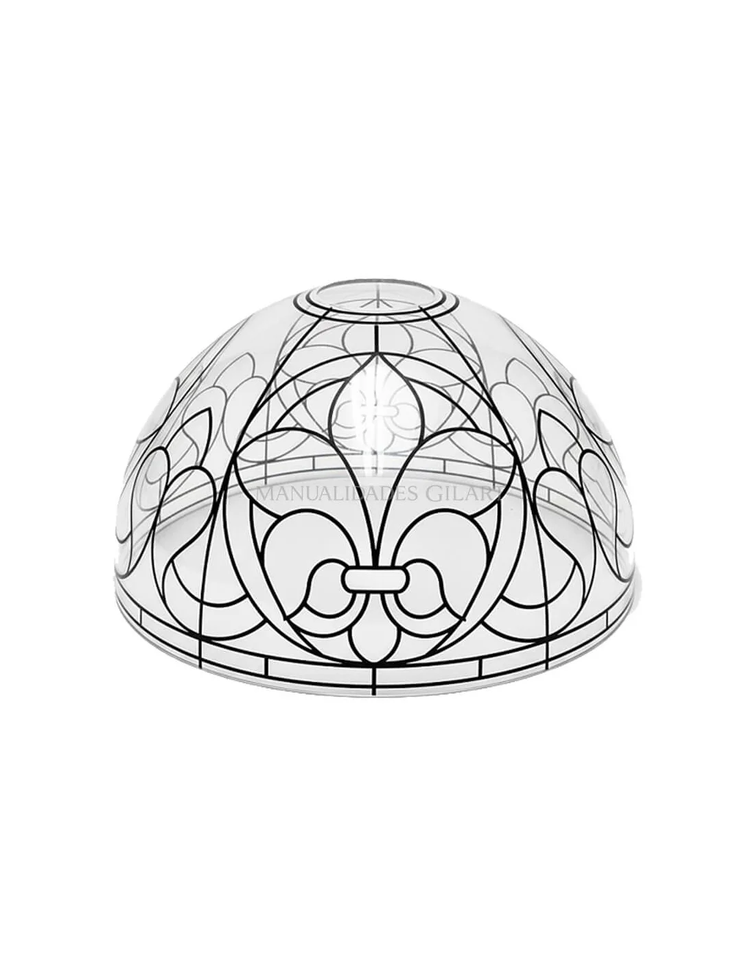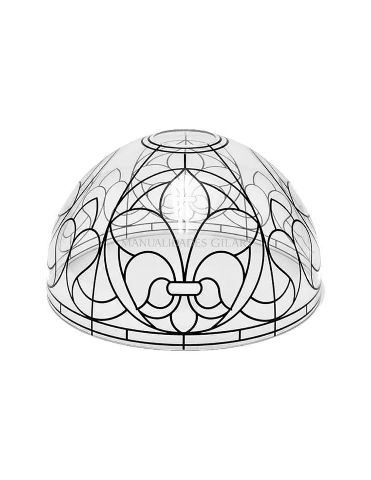 La Pantalla Lámpara Metacrilato Estilo Tiffany Flor de lis Círculo 20 cm es una pieza clave para quienes buscan crear una iluminación personalizada y artística. Este soporte destaca por su diseño heráldico de flor de lis enmarcado en círculos impreso sobre la superficie, lo que facilita enormemente el trabajo de decoración al servir como guía precisa para aplicar el color y el relieve. Al ser de metacrilato, combina la estética señorial del vitral clásico con la ligereza y seguridad de un material irrompible.