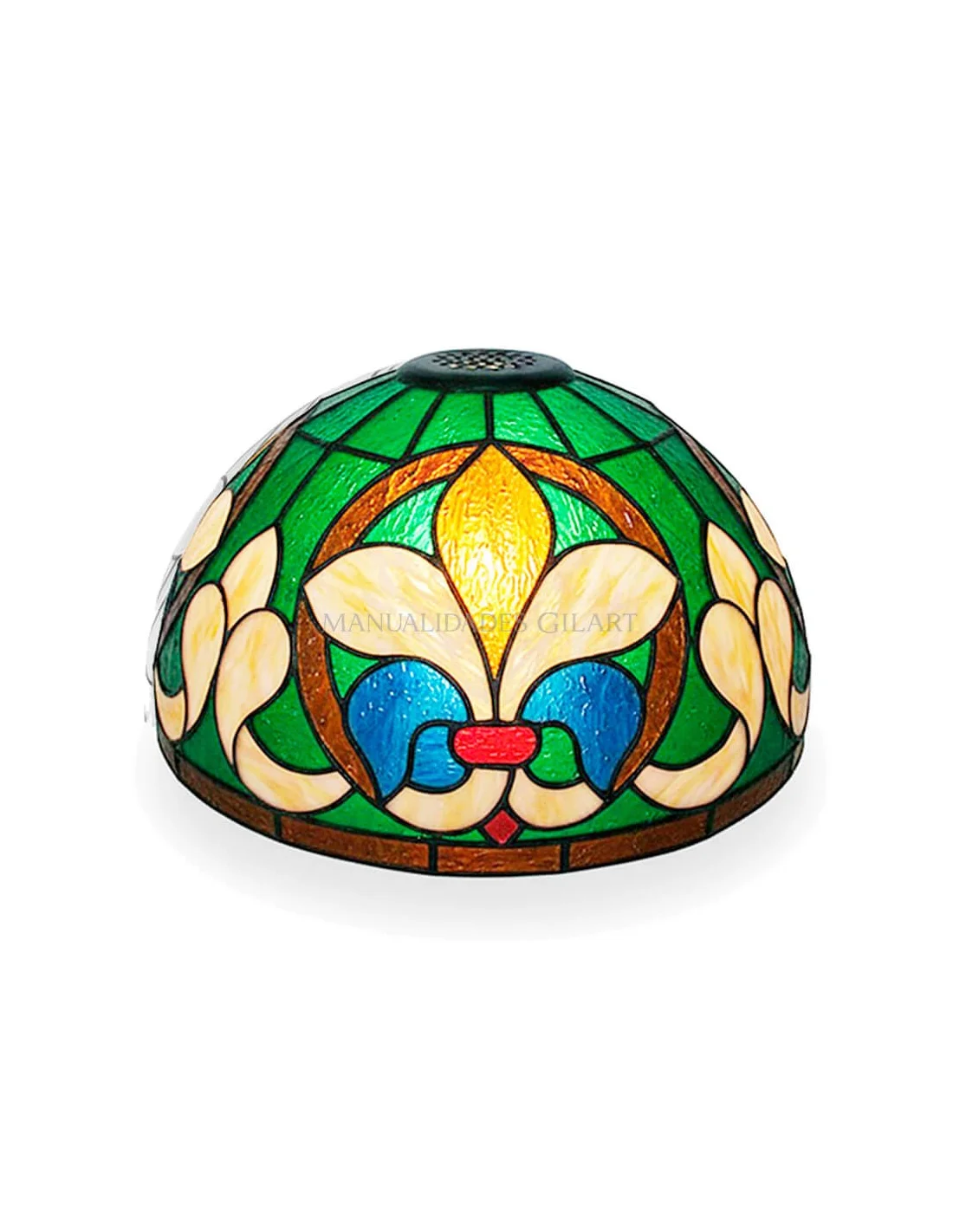 Pantalla Lámpara Metacrilato Estilo Tiffany Flor de Lis Círculo 20 cm es el soporte ideal para crear lámparas decorativas con efecto vitral. Su diseño impreso facilita la aplicación de pinturas para cristal, logrando acabados luminosos y precisos. Ligera, resistente y fácil de trabajar, aporta un estilo elegante y creativo a cualquier espacio. Da forma a tu propia lámpara personalizada.