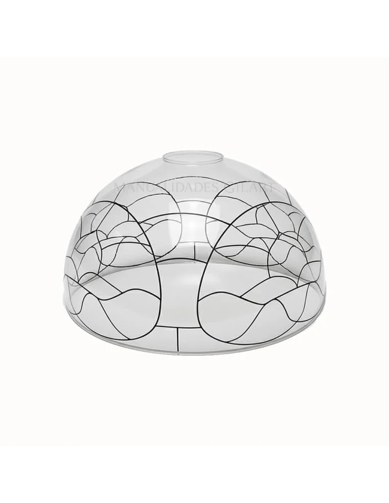 La Pantalla Lámpara Metacrilato Estilo Tiffany Flor de Lis 20 cm es una pieza clave para quienes buscan crear una iluminación personalizada y artística con un motivo clásico y elegante. Este soporte destaca por su diseño de la flor de lis impreso sobre la superficie, lo que facilita enormemente el trabajo de decoración al servir como guía precisa para aplicar el color y el relieve de forma simétrica en toda la cúpula. Al ser de metacrilato, combina la estética artesanal del vitral tradicional con la ligereza y seguridad de un material irrompible.
