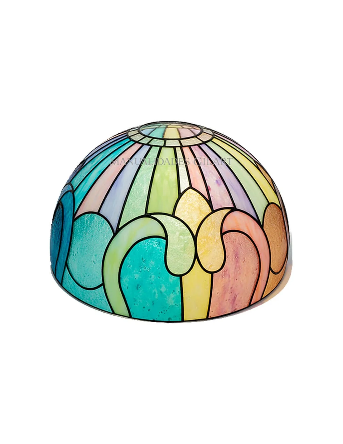 La Pantalla Lámpara Metacrilato Estilo Tiffany Ornamento 20 cm es una opción ideal para crear una lámpara decorativa con un acabado artesanal elegante y seguro. Fabricada en metacrilato transparente de alta resistencia, ofrece la estética clásica del vidrio Tiffany con la ventaja de ser más ligera y resistente a golpes.