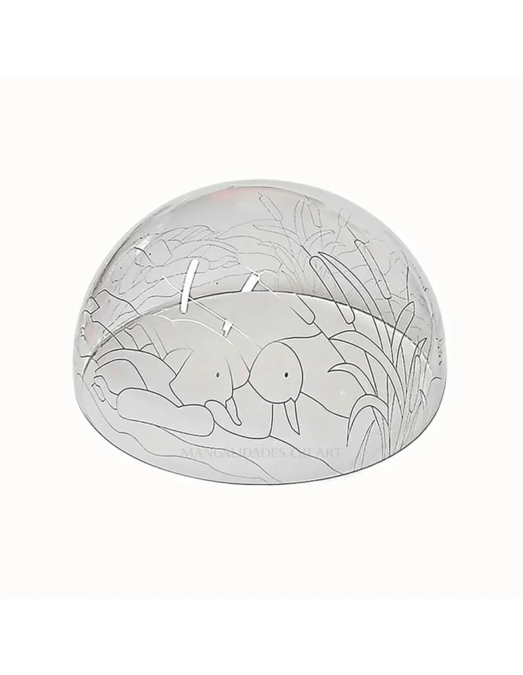 Pantalla Lámpara Metacrilato 25 cm Diseño Patos en el Lago Estilo Tiffany es el soporte ideal para crear una iluminación decorativa con un paisaje natural y relajante. Su dibujo guía detallado facilita un trabajo de pintado preciso, permitiendo aplicar técnicas de falso vitral y conseguir un acabado limpio y definido.