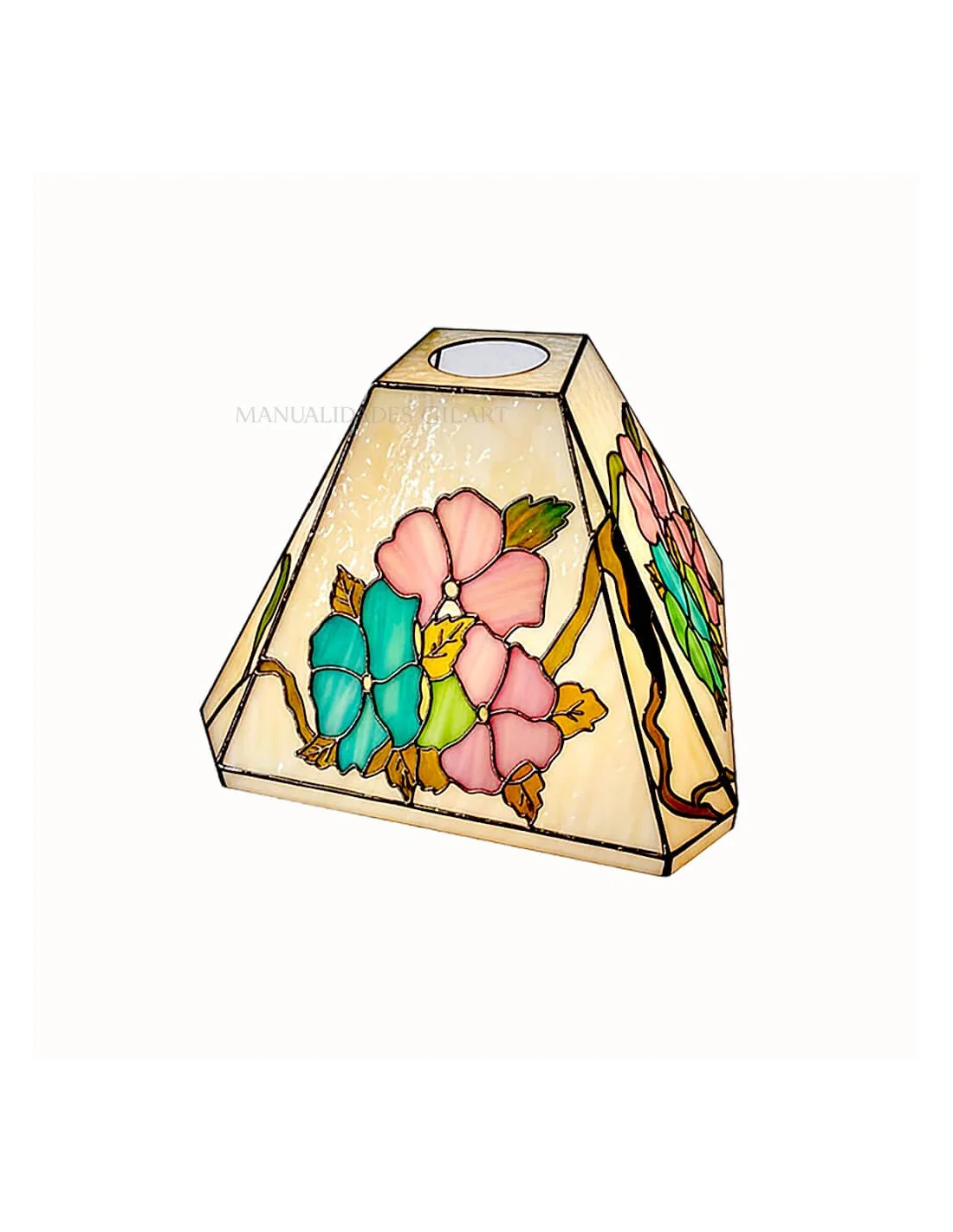 La Pantalla Lámpara Metacrilato 25 cm Diseño Pensamientos Estilo Tiffany es una opción ideal para crear una lámpara decorativa con un acabado artesanal elegante y lleno de color. Su diseño floral, combinado con una estructura octogonal, reproduce el estilo clásico de las lámparas Tiffany, aportando un efecto visual más auténtico y sofisticado.