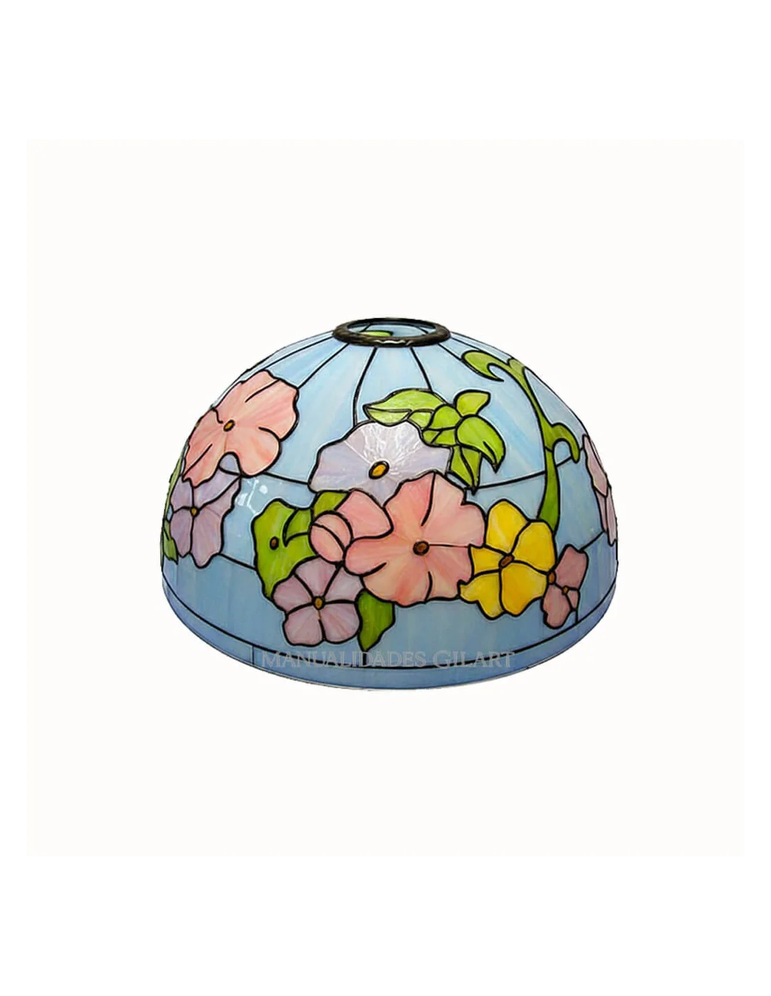 La Pantalla Lámpara Metacrilato 20 cm Pensamientos Floral es la base ideal para crear lámparas de imitación Tiffany con un acabado profesional en formato compacto. Fabricada en metacrilato transparente, permite reseguir el dibujo con plomo líquido o adhesivo y aplicar pintura para cristal fácilmente. Para garantizar la durabilidad de tu obra y realzar el brillo de los pétalos, recomendamos aplicar una capa de barniz protector tras el secado. Compatible con bombillas LED, esta pieza convierte cualquier rincón en un lienzo de luz personalizado con un toque artesanal único. 💡