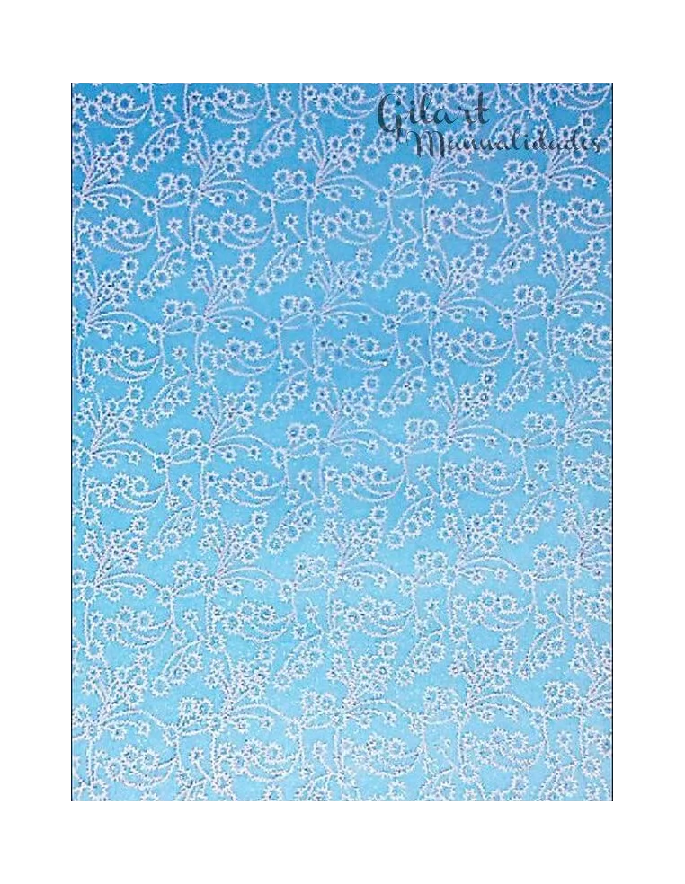 Papel Scrapbooking Fibra Azul Flores Blancas 50x70 cm Gilart: Sumérgete en la creatividad con esta exclusiva hoja de papel de scrapbooking, diseñada para transformar tus proyectos de manualidades en obras de arte. Con generosas dimensiones de 50x70 cm, este papel presenta una delicada textura de fibra en un cautivador tono azul, adornado con elegantes motivos de flores blancas. Su diseño versátil lo hace perfecto para una amplia gama de aplicaciones, desde la creación de álbumes de recuerdos personalizados y tarjetas de felicitación únicas hasta el forrado de cajas decorativas y la elaboración de elementos para decoración del hogar. La calidad de su gramaje asegura durabilidad y facilidad de manejo, permitiendo cortes limpios y pliegues precisos.