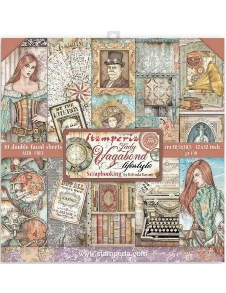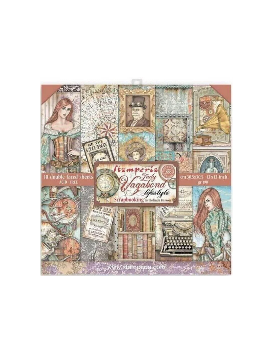 Papeles scrapbooking 30,5x30,5 cm Bloc 10 hojas Lady Vagabond Lifestyle Stamperia SBBL98