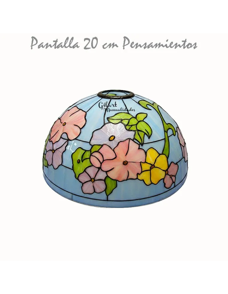 Pantalla Lámpara Tiffany Metacrilato 20 cm Diseño Pensamientos (DIY): Crea tu propia lámpara con un encantador diseño floral. Esta pantalla para manualidades es ideal para aficionados y artistas, permitiéndote montar una hermosa pantalla decorativa inspirada en los clásicos pensamientos. Disfruta del arte del vidrio falso de forma sencilla y sorprendente. ¡Empieza tu proyecto creativo hoy!