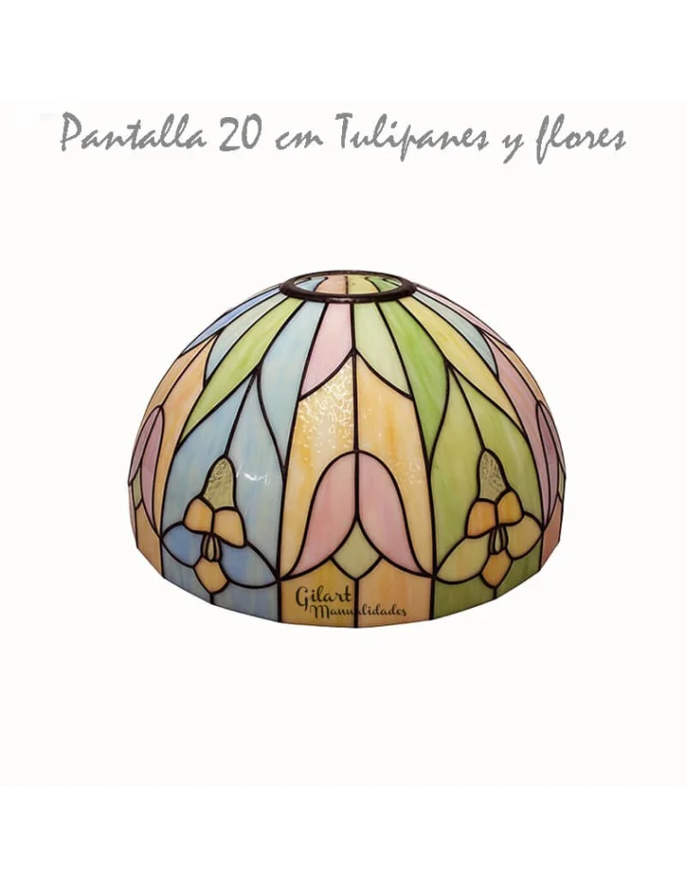 Pantalla Tiffany DIY Metacrilato 20 cm - Tulipanes y Flores para crear lámparas decorativas con estilo artístico. Ideal para proyectos de vitral, manualidades con luz o restauración de luminarias. Diseño floral colorido que realza cualquier espacio. Atrévete a personalizar tu hogar.