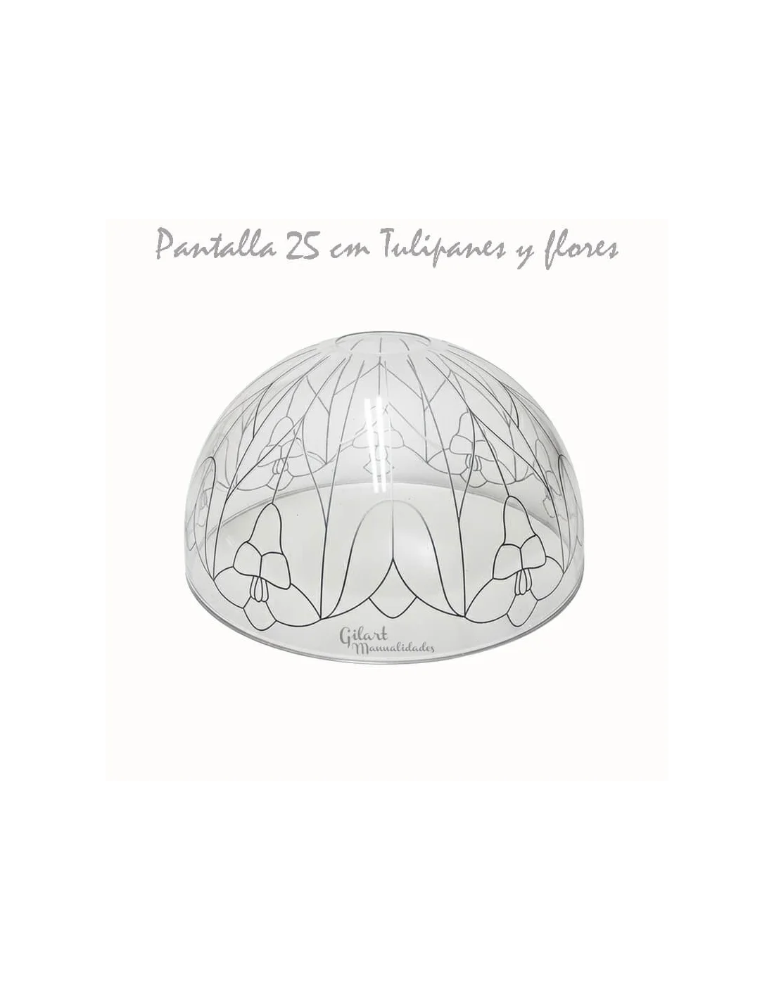 La Pantalla Lámpara Metacrilato 25 cm Tulipanes y Flores es la base ideal para crear una lámpara de imitación Tiffany con un diseño floral vibrante. Fabricada en metacrilato transparente de alta resistencia, permite reseguir sus líneas con plomo líquido o cinta de plomo adhesiva de forma sencilla. Tras aplicar la pintura para cristal, es fundamental dar una capa de barniz protector para asegurar la durabilidad del trabajo y realzar el brillo de los pétalos. Compatible con bombillas LED, esta pantalla proyecta una luz artística que aporta elegancia y un toque artesanal a cualquier estancia. 💡