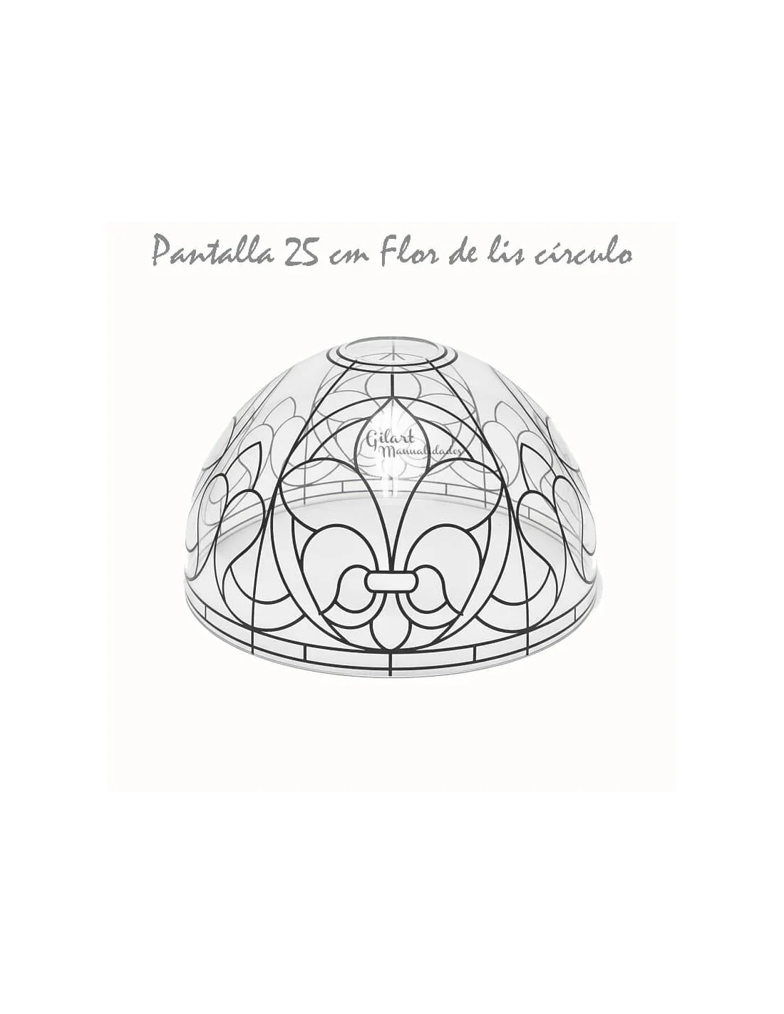 Pantalla Lámpara Metacrilato 25 cm DIY Flor de Lis Círculo: Diseño clásico con flor de lis para vitrales artesanales. Compatible con pintura, cristal y plomo líquido. Crea una lámpara única con estilo atemporal y luz cálida que embellece cualquier ambiente.