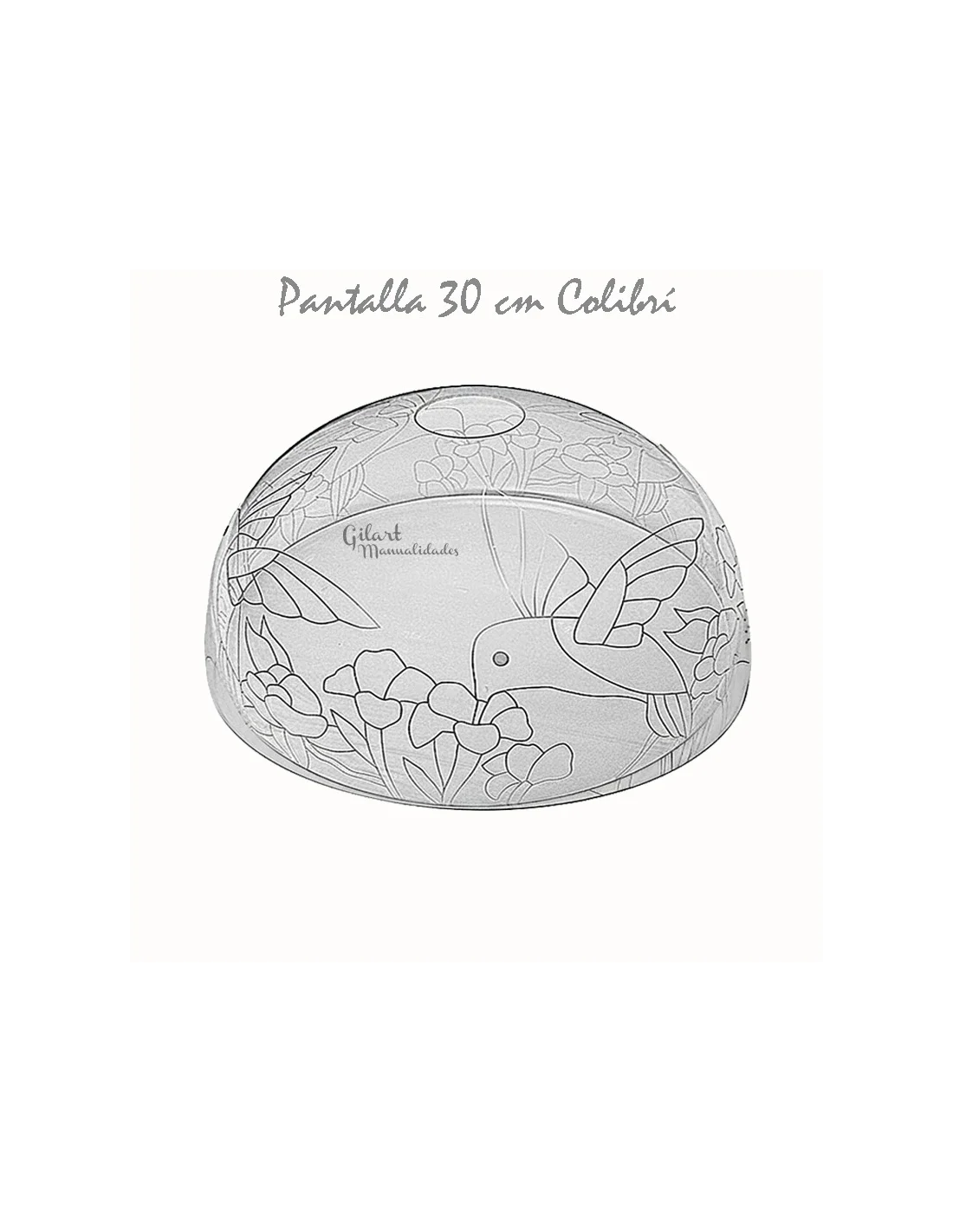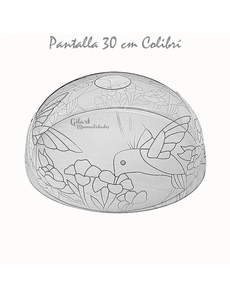 Pantalla Lámpara Metacrilato 30 cm DIY Colibrí: Diseño con colibrí en vuelo para vitrales artesanales. Compatible con pintura, cristal y plomo líquido. Crea una lámpara única con estilo natural y luz cálida que transforma espacios con elegancia y movimiento.