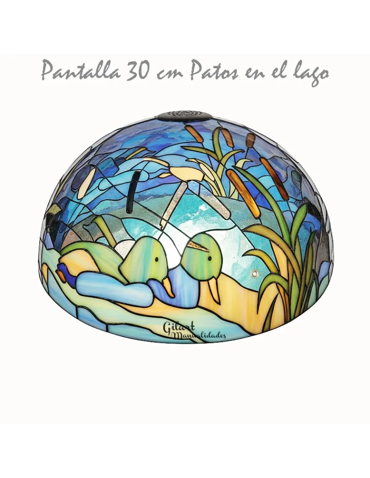 Pantalla Tiffany DIY Metacrilato 30 cm - Patos en el lago, ideal para crear lámparas con efecto vitral sin necesidad de soldar. Personaliza con plomo líquido y pinturas para cristal. Una forma sencilla y creativa de decorar tu hogar con luz y arte. Descubre tu lado más artesanal.