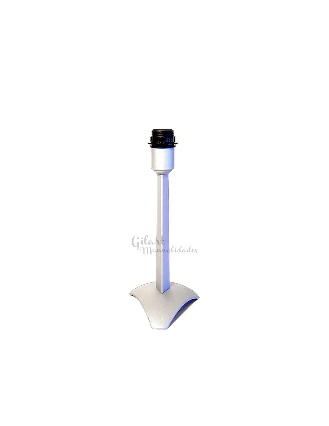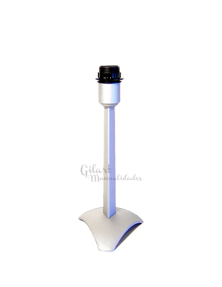 Pie de lámpara triangular de 27 cm fabricado en zamak gris plata. Base estable con diseño moderno para pantallas estilo Tiffany de metacrilato. Ideal para crear lámparas personalizadas con estilo contemporáneo, funcionalidad y acabado profesional.