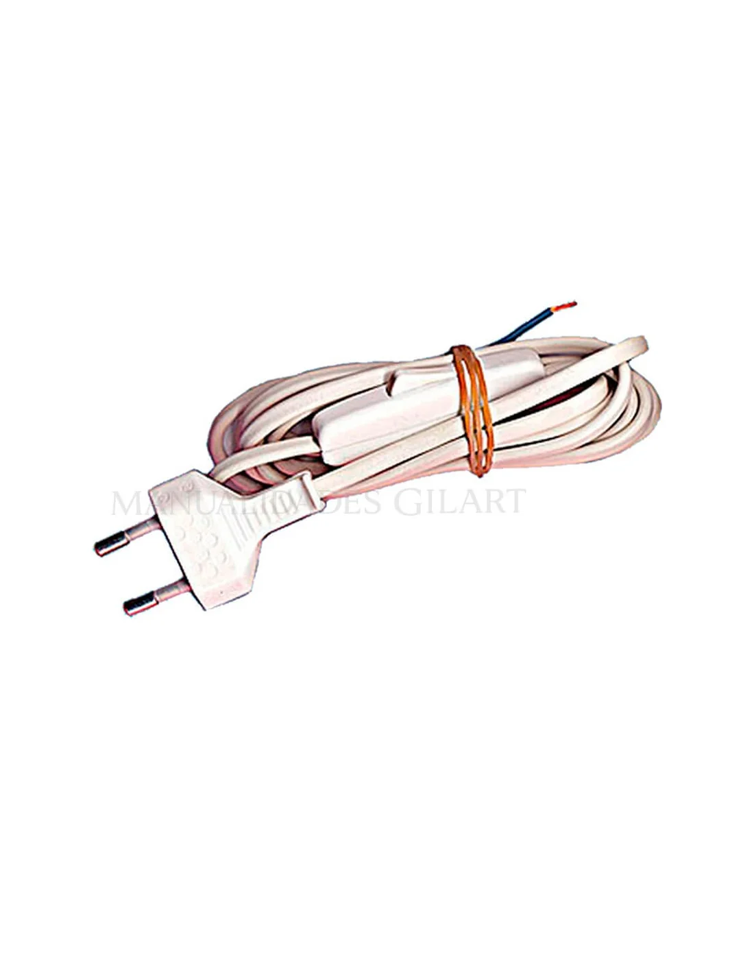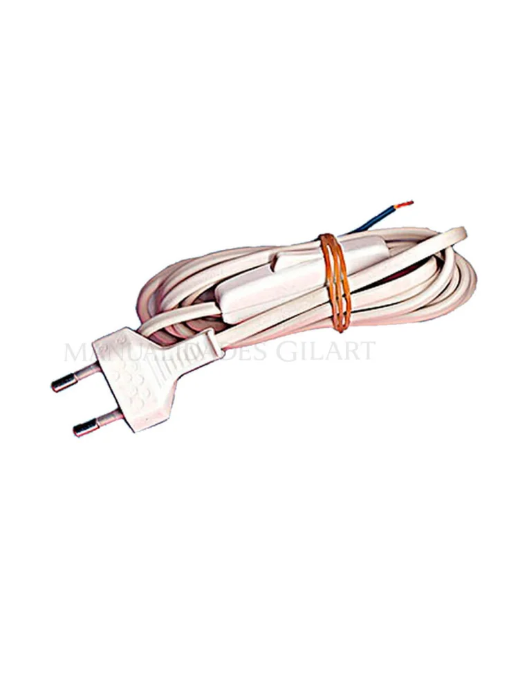 Cable de alimentación blanco de 2 metros equipado con clavija y un interruptor de mano integrado. Diseñado específicamente para el montaje y reparación de lámparas, este cable ofrece una solución segura y estética para tus proyectos de iluminación DIY. Su longitud extendida proporciona la flexibilidad necesaria para ubicar tus luminarias con total libertad en cualquier estancia.