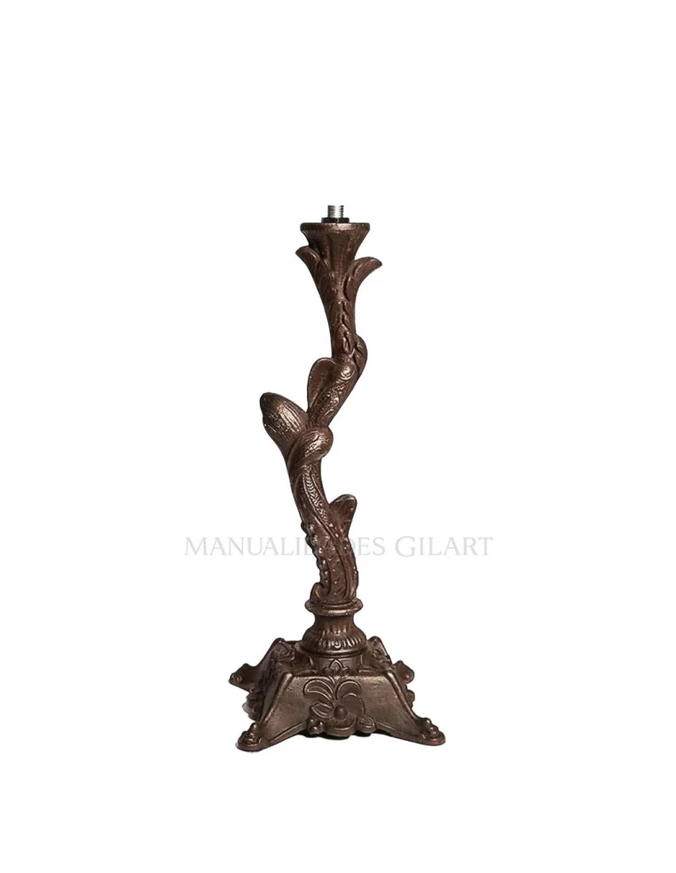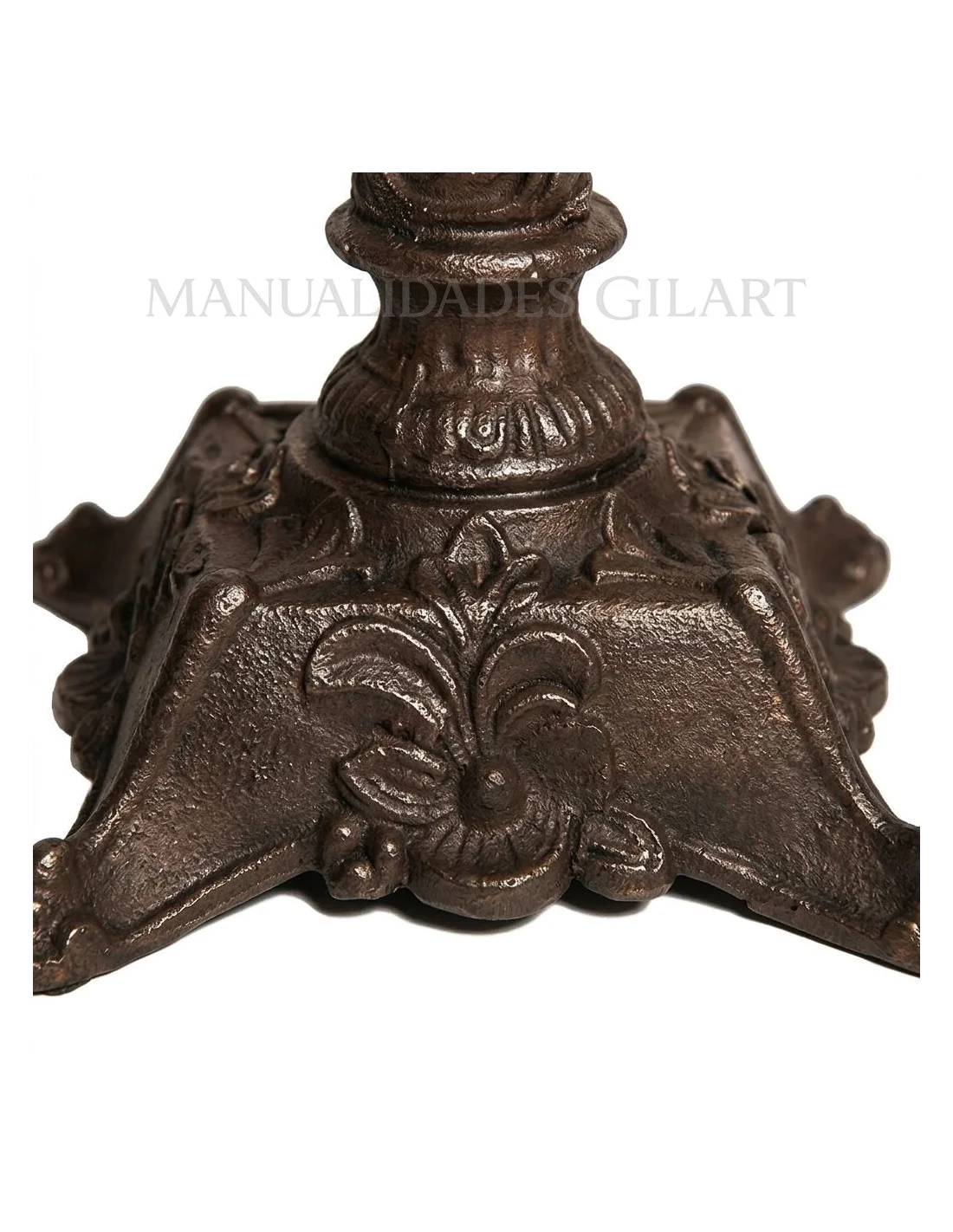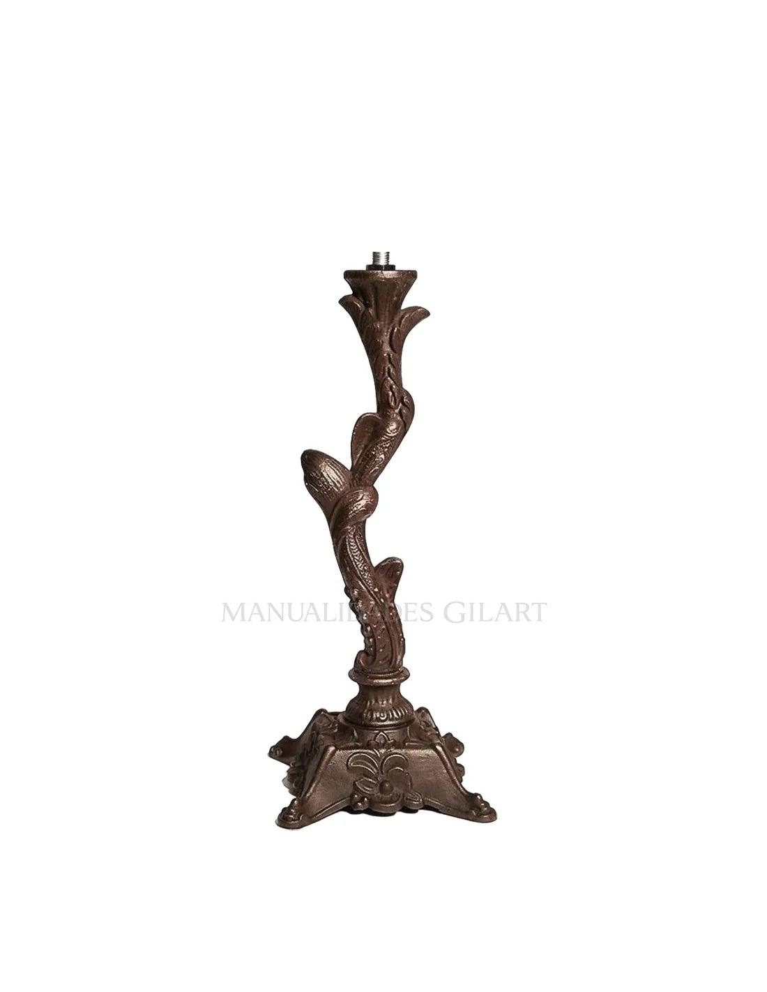 La instalación es sencilla, permitiendo el paso de cableado estándar y la colocación de casquillos compatibles con total seguridad. Al ser una pieza metálica con tratamiento superficial, su mantenimiento es mínimo y su resistencia al desgaste es excelente, asegurando que tu obra de arte se mantenga firme y hermosa durante décadas. Su base ornamentada no solo es un elemento de apoyo, sino una extensión artística de la propia pantalla.