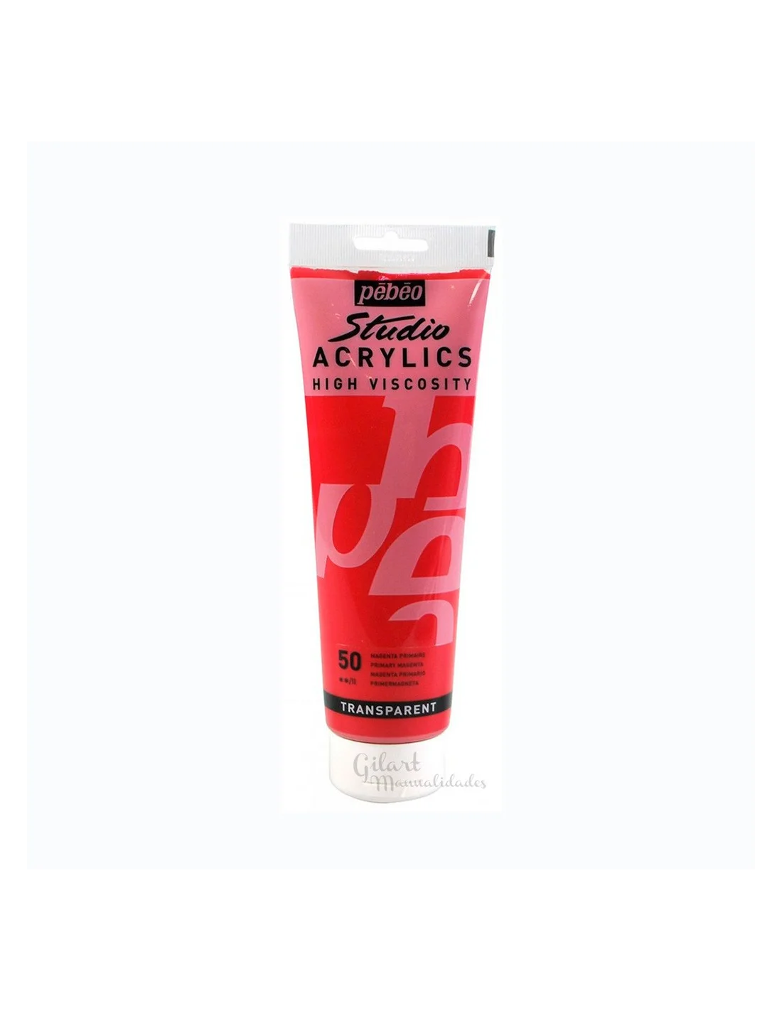 Pintura acrílica Pébéo Studio 250 ml Magenta 50 con color intenso y excelente capacidad de mezcla. Ideal para lograr tonos vibrantes, degradados, equilibrados y composiciones llenas de fuerza cromática. Incorpórala a tu paleta y potencia tus creaciones.