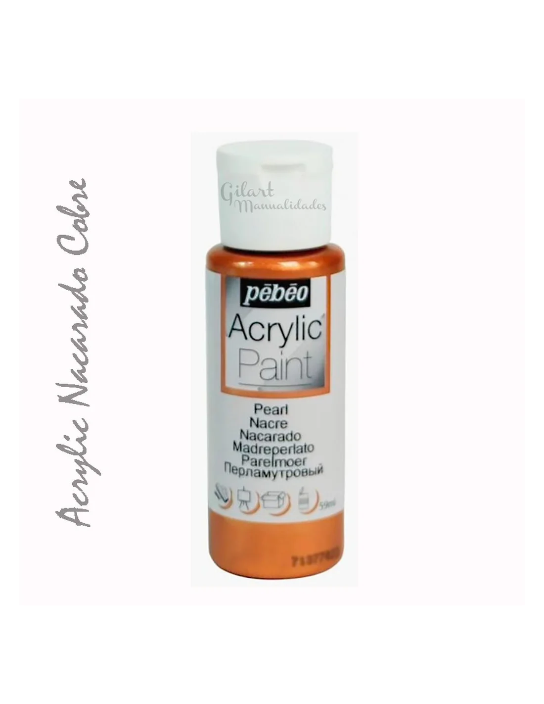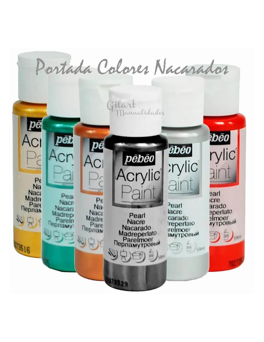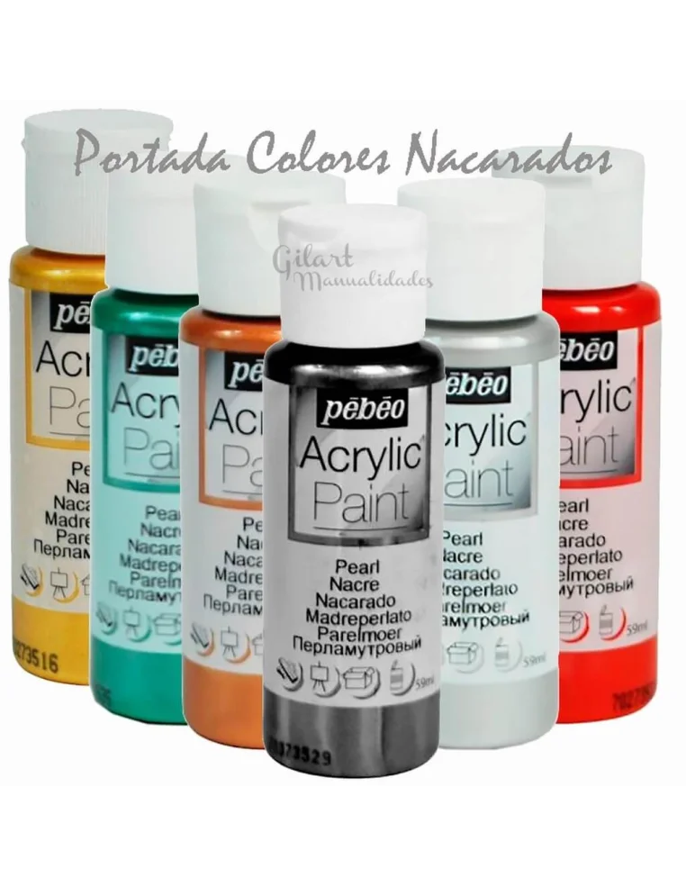 Pintura Acrílica Pebeo Nacarado 59 ml nacarada perlada y metalizado. Fórmula base agua de alta calidad con secado rápido para múltiples superficies. Añade profundidad y elegancia profesional a tus proyectos artísticos y decorativos con brillo sutil.
