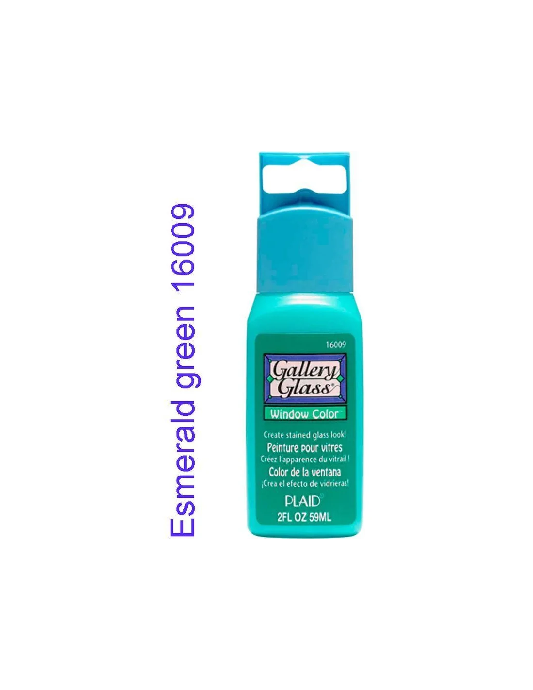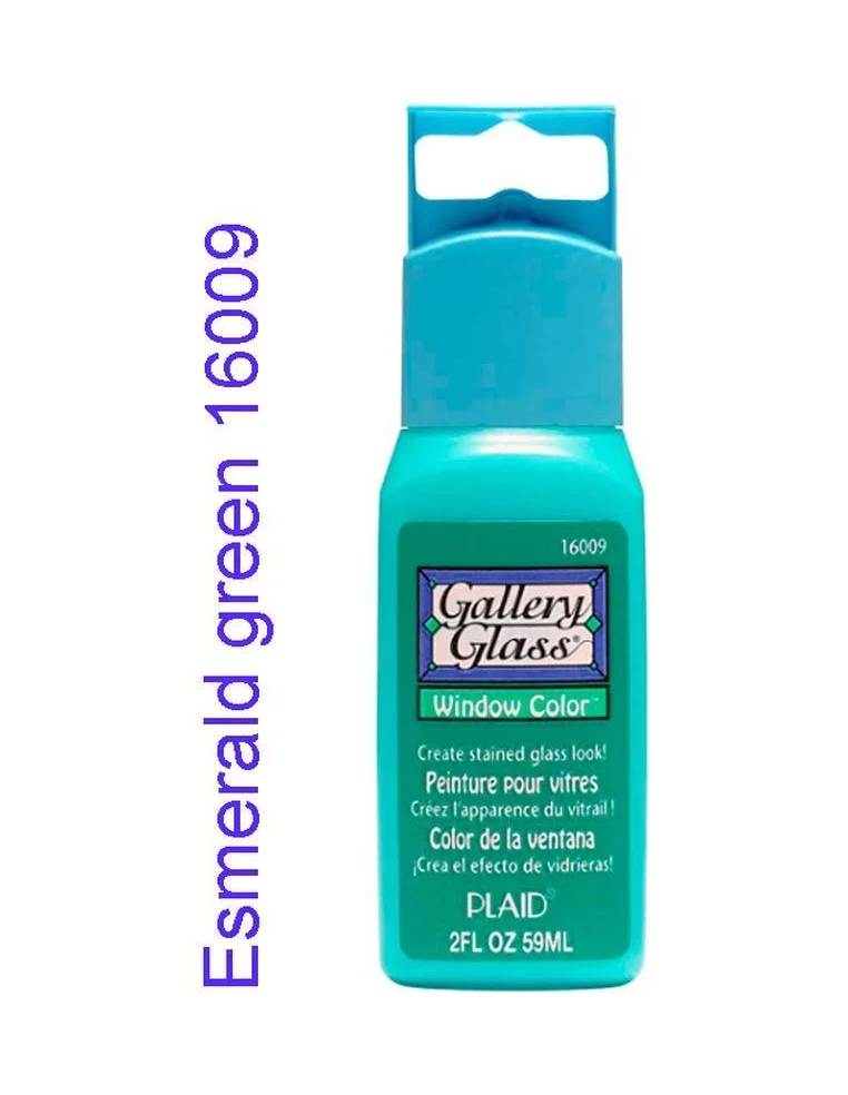 Pintura Gallery Glass Vidrio Verde Esmeralda 59 ml: Crea efectos de vitral con un tono esmeralda intenso y brillante en vidrio y metacrilato. Tubería aplicadora para precisión sin pincel, fórmula al agua segura y no tóxica. Da vida a tus proyectos decorativos con acabados profesionales y duraderos en interiores.