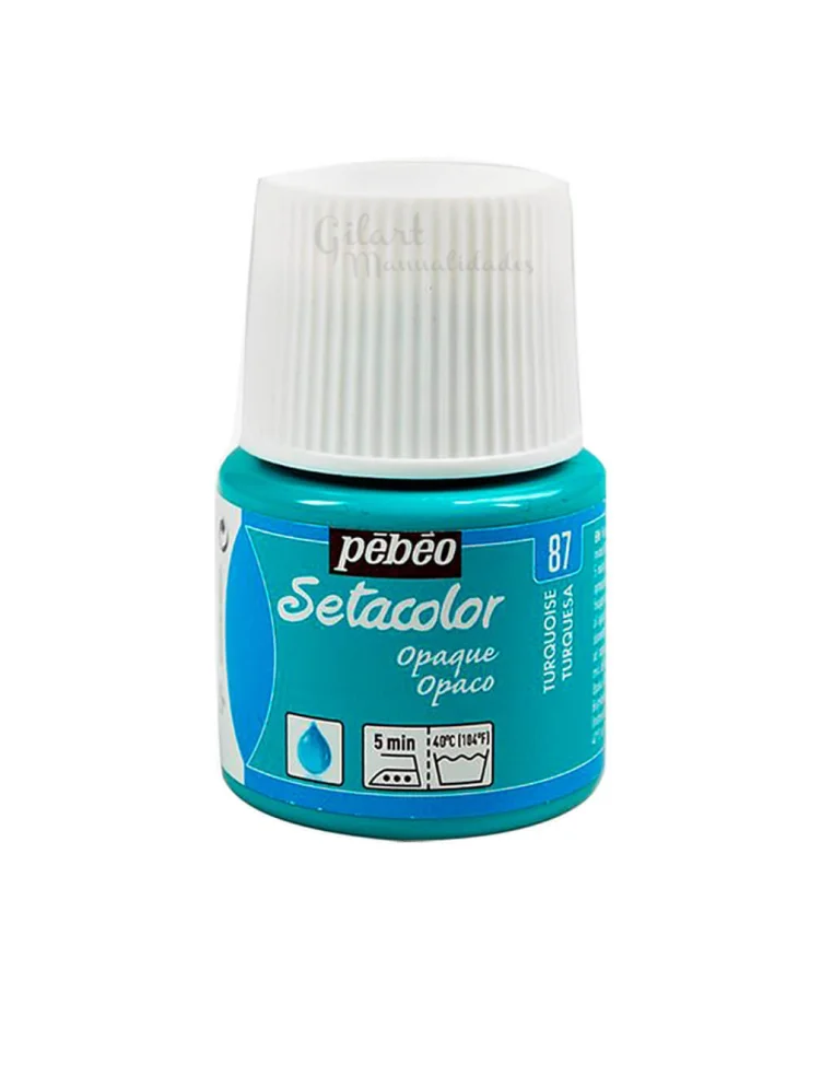 En Manualidades Gilart recomendamos Setacolor Opaco de Pebeo por su rendimiento luminoso en algodón, lana y fibras sintéticas. Este color Turquesa n.º 87 destaca por su acabado mate y una textura que permite desde trazos intensos hasta efectos acuarelados si se diluye. Tras fijar con plancha (5 min.) o en horno (150 °C), resiste lavados a máquina manteniendo los colores vivos. Es el aliado perfecto de nuestros pinceles Teijín para lograr una precisión profesional en cada detalle de tus diseños textiles, garantizando un resultado duradero y de alta calidad. 🎨