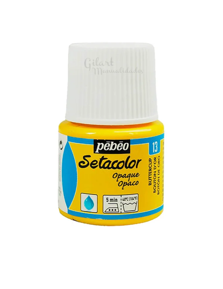 En Manualidades Gilart recomendamos Setacolor Opaco de Pebeo por su rendimiento luminoso en algodón, lana y fibras sintéticas. Este color Botón de oro n.º 13 destaca por su acabado mate y una textura que permite desde trazos intensos hasta efectos acuarelados si se diluye. Tras fijar con plancha (5 min.) o en horno (150 °C), resiste lavados a máquina manteniendo los colores vivos. Es el aliado perfecto de nuestros pinceles Teijín para lograr una precisión profesional en cada detalle de tus diseños textiles, garantizando un resultado duradero y de alta calidad. 🎨
