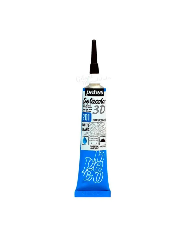 La Pintura para Tela 3D Brod'Perle Blanco 201 de Pebeo es un perfilador de alta precisión diseñado para crear perlas con relieve de acabado nacarado. Su fórmula fluida permite una aplicación directa y sencilla, ideal para decorar prendas y accesorios con detalles dimensionales que mantienen su volumen y flexibilidad tras el secado.