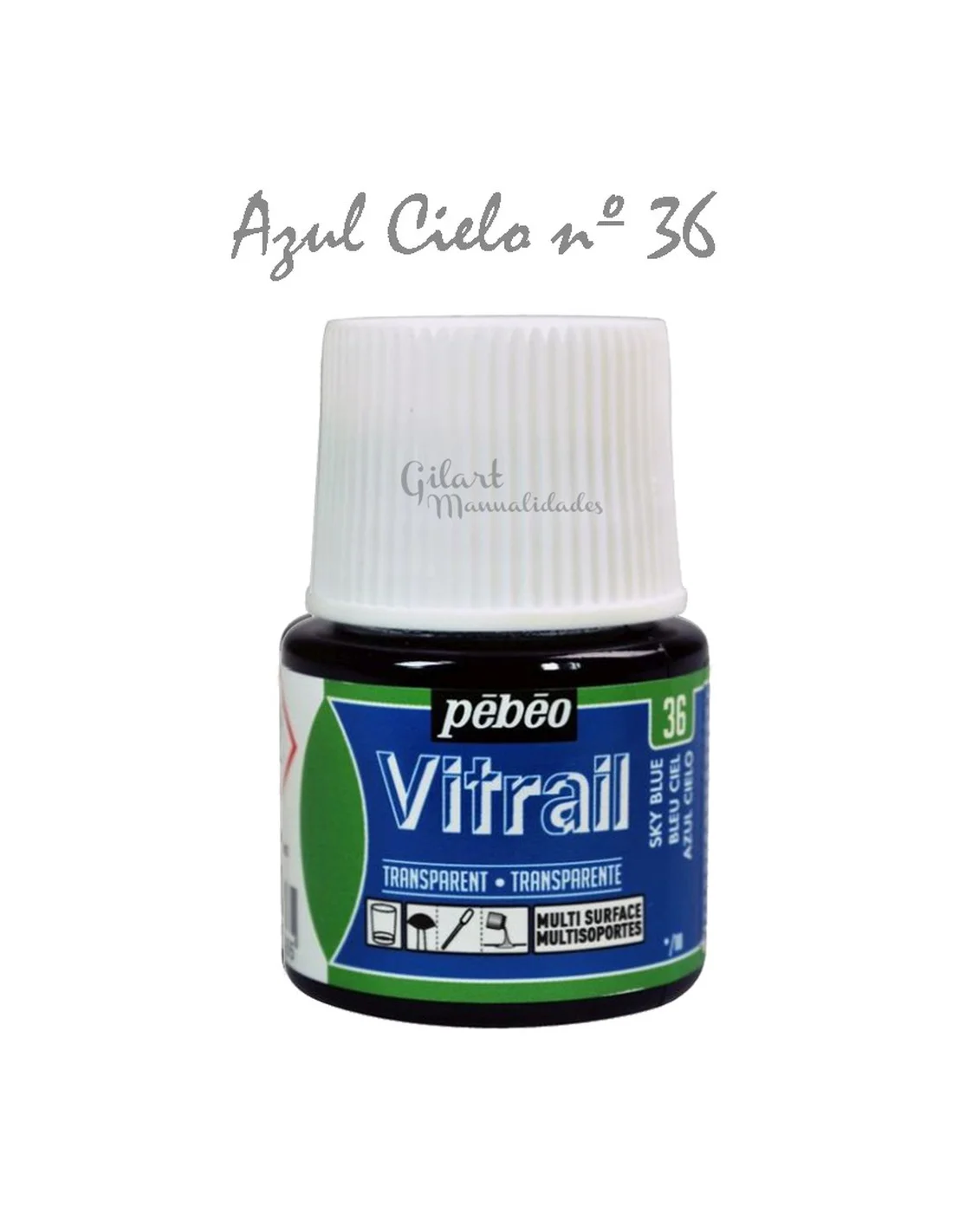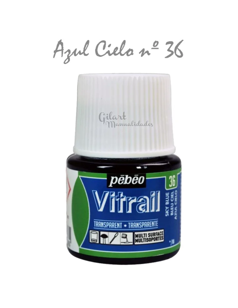 Pintura Vitrail Pebeo 45 ml Transparente - Azul Cielo nº 36