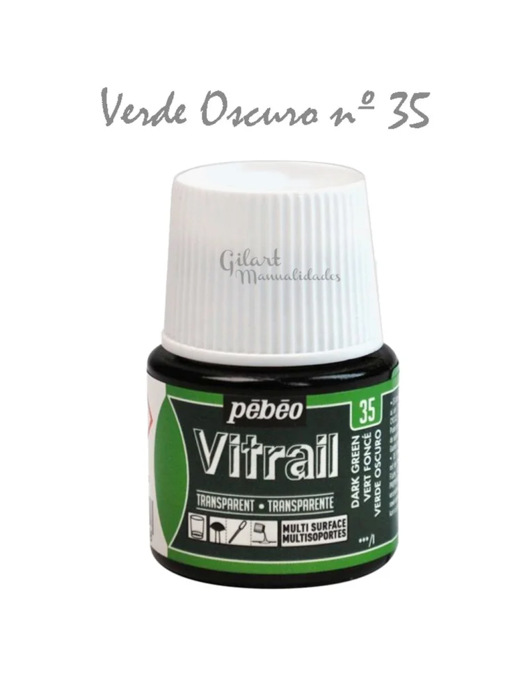 Pintura Vitrail Pebeo 45 ml Transparente - Verde Oscuro nº 35