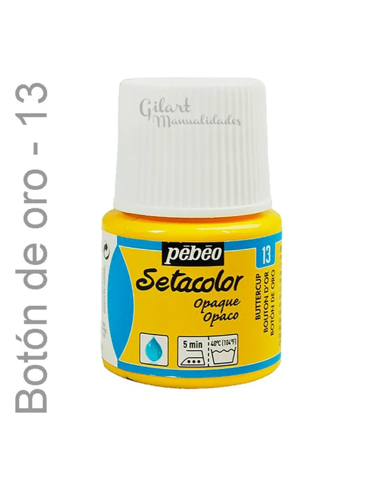 En Manualidades Gilart recomendamos Setacolor Opaco de Pebeo por su rendimiento luminoso en algodón, lana y fibras sintéticas. Este color Botón de oro n.º 13 destaca por su acabado mate y una textura que permite desde trazos intensos hasta efectos acuarelados si se diluye. Tras fijar con plancha (5 min.) o en horno (150 °C), resiste lavados a máquina manteniendo los colores vivos. Es el aliado perfecto de nuestros pinceles Teijín para lograr una precisión profesional en cada detalle de tus diseños textiles, garantizando un resultado duradero y de alta calidad. 🎨