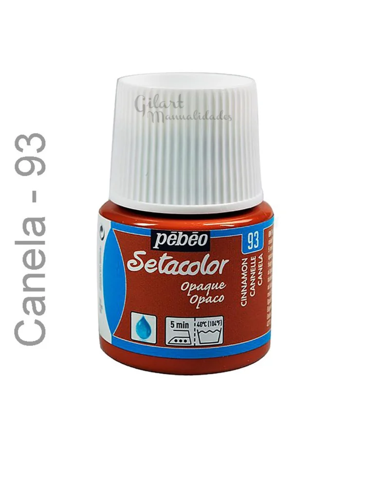 Pintura para tela Setacolor Opaco en color Canela n.º 93. Su fórmula concentrada de base acuosa ofrece una excelente resistencia a la luz y cobertura total en tejidos claros y oscuros. Su textura rica permite aplicaciones homogéneas con pincel o estarcido, manteniendo la flexibilidad tras el fijado con plancha o en horno doméstico. Ideal para algodón, lino y mezclas.