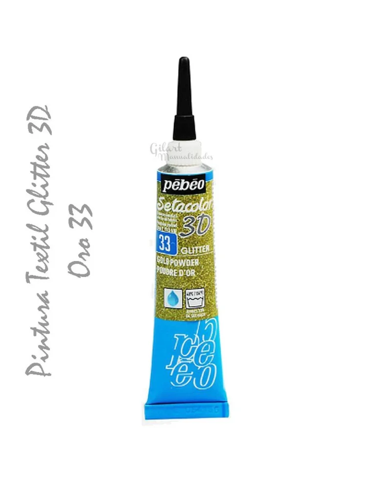 La gama Setacolor 3D Glitter de Pebeo en su tono Plata 36 ofrece un relieve permanente con purpurina de alta intensidad. Su fórmula sin fijación solo requiere 72 horas de secado para resistir lavados a 40 °C sin necesidad de plancha. El tubo con cánula asegura un trazo limpio y sin burbujas en algodón, lana o fibras sintéticas. Se puede aplicar con espátula o con nuestros pinceles Teijín para crear efectos metalizados en superficies amplias. Lavar al revés y evitar suavizantes. Como medida de seguridad, mantener fuera del alcance de los niños. ¡Brillo plateado y volumen profesional! 🎨