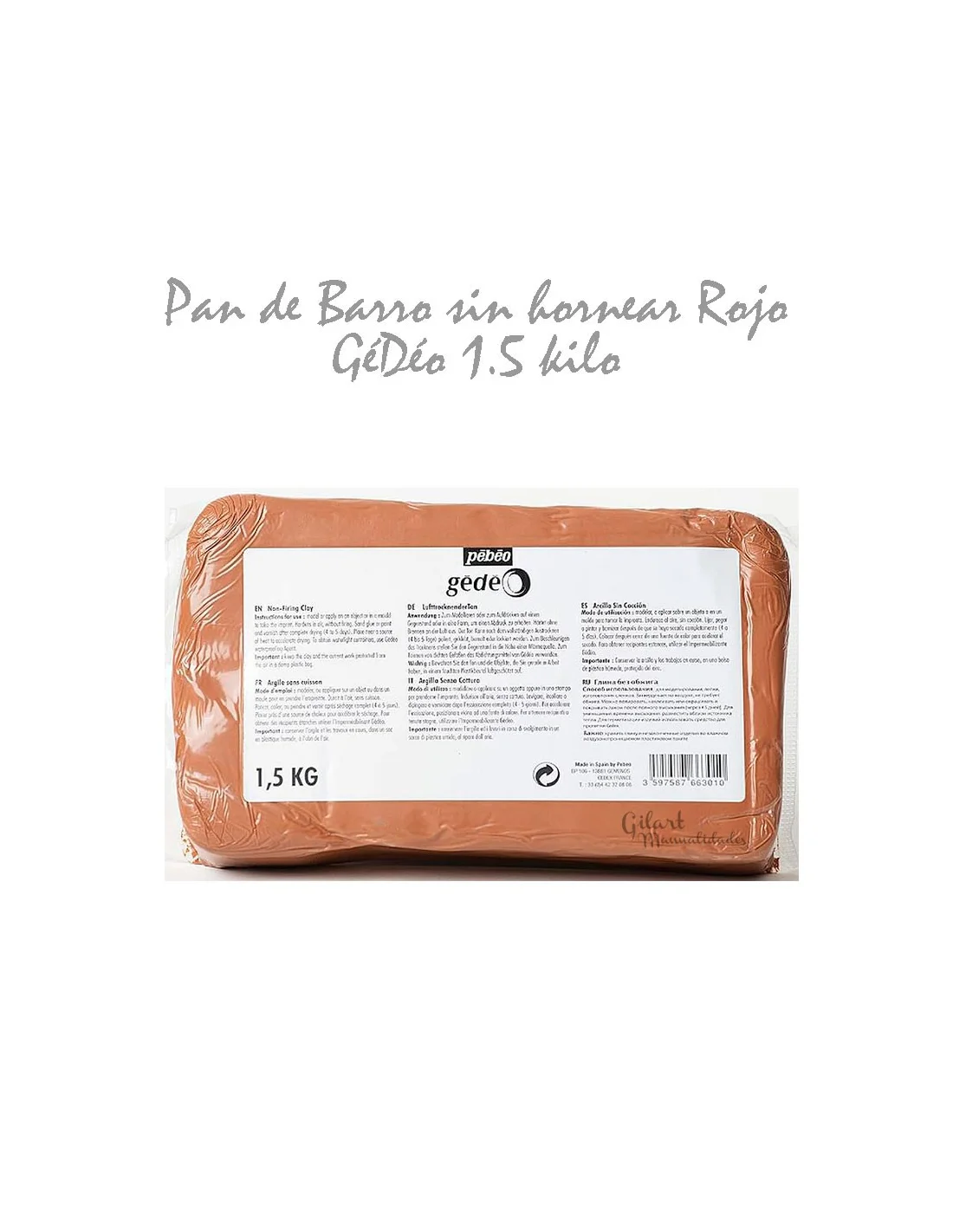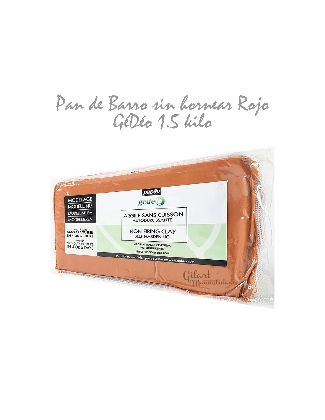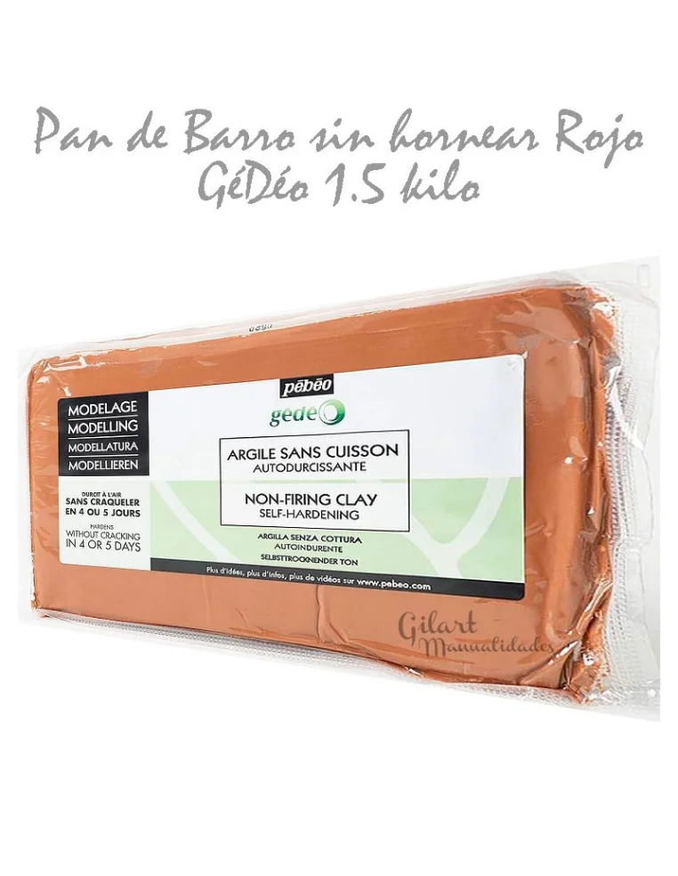 Arcilla roja sin cocción Gédéo Pébéo 1.5 kg es una pasta natural lista para usar que se endurece al aire sin necesidad de horno. Su textura suave y su gran plasticidad permiten modelar fácilmente figuras, relieves, piezas decorativas o pequeñas esculturas. Ideal para trabajos artísticos, escolares o proyectos creativos en casa.