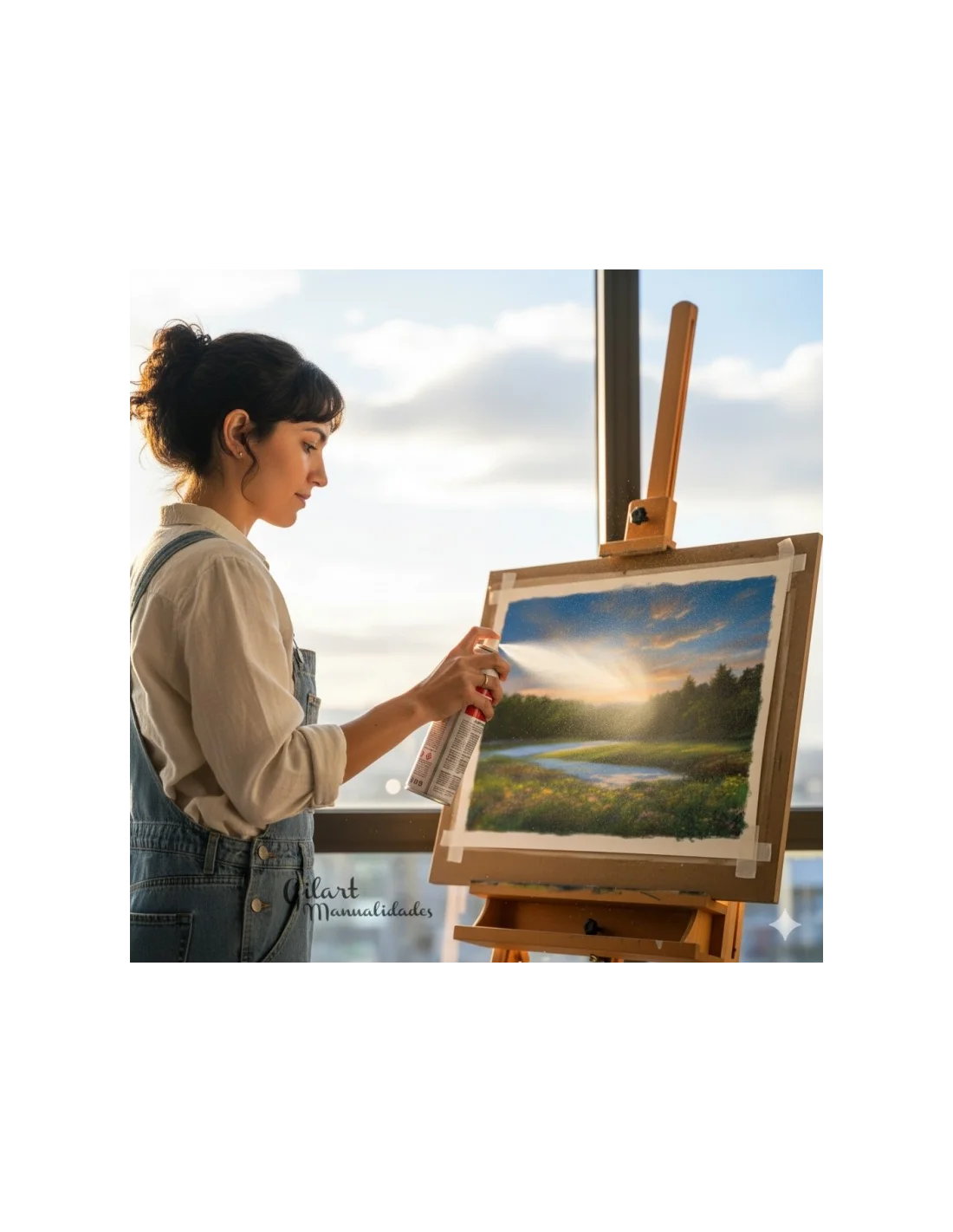 Su fórmula con base acrílica de alta calidad no amarillea con el tiempo, mantiene la intensidad original de los colores y no altera la textura del papel. Gracias a su aplicación en aerosol, garantiza una distribución homogénea y fina, fijando cada trazo y detalle sin saturar la superficie. Es perfecto para artistas, estudiantes y aficionados que desean proteger sus dibujos de manchas, roces y la exposición ambiental.