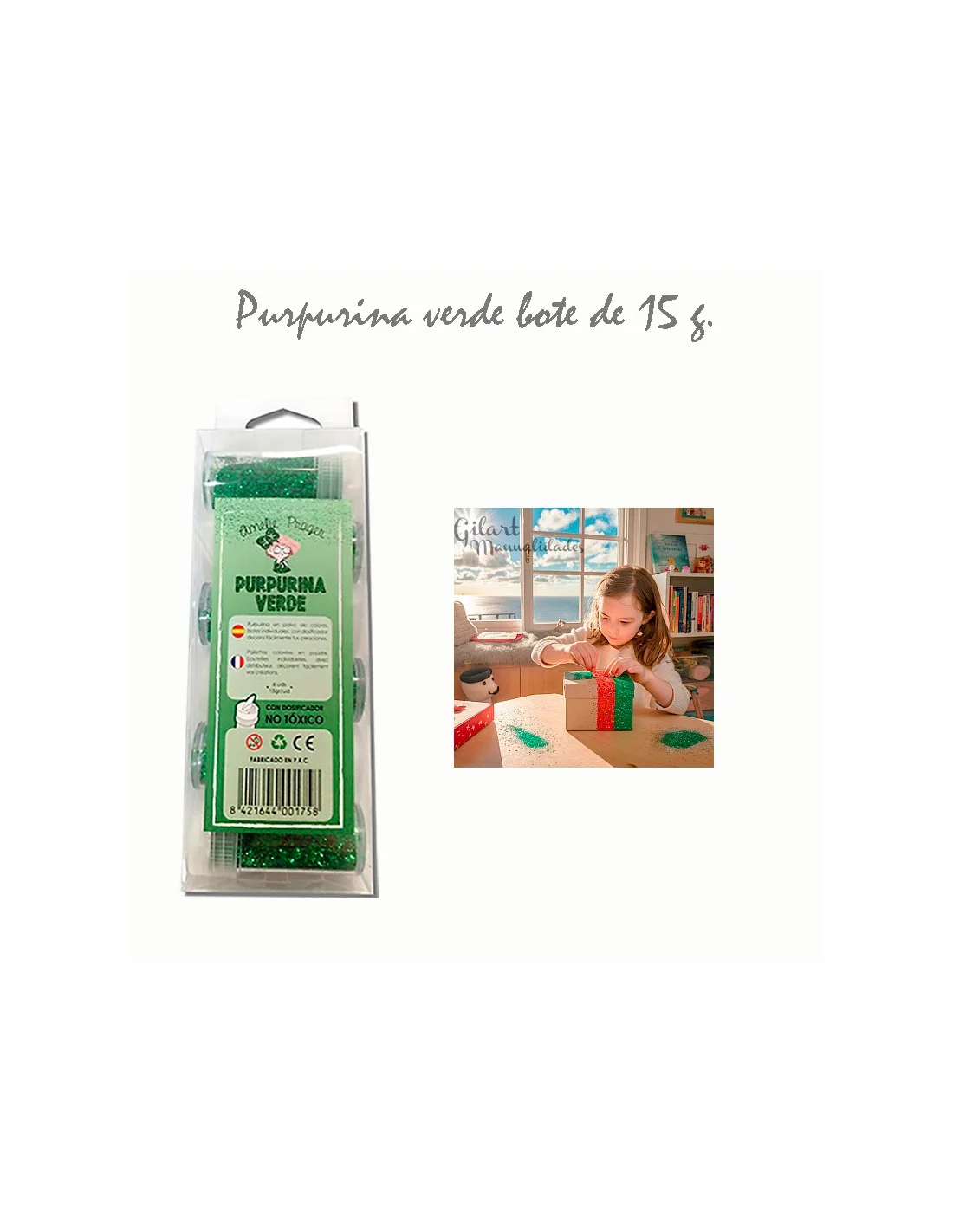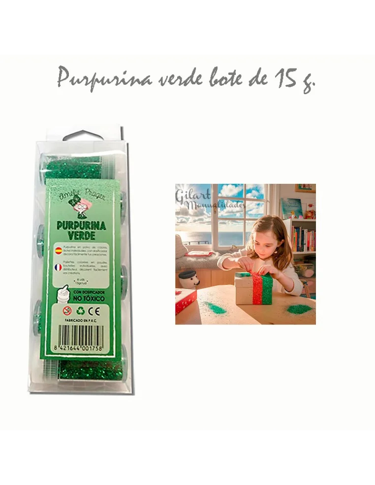 Purpurina Verde Amelie 15 g No Tóxica para Manualidades Tarjetas y Proyectos