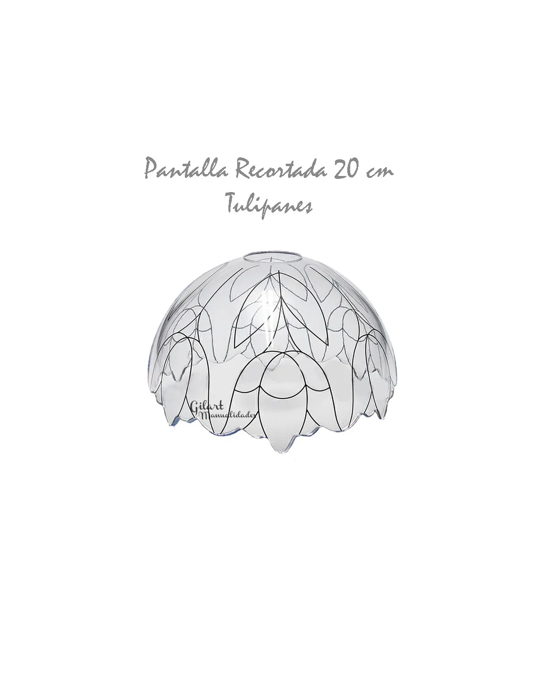 La Pantalla Lámpara Metacrilato 20 cm borde Recortado Tulipanes es la base perfecta para crear proyectos de falso vitral con un acabado profesional. Su diseño simétrico con borde de ondas facilita reseguir el dibujo con plomo líquido o adhesivo y aplicar pintura para cristal sin complicaciones. Para asegurar la durabilidad y realzar el brillo de los tulipanes, recomendamos aplicar una capa de barniz protector tras el secado. Compatible con bombillas LED, esta pantalla transforma cualquier ambiente pequeño en un espacio lleno de arte, siendo ideal para lámparas de mesa o apliques. 💡
