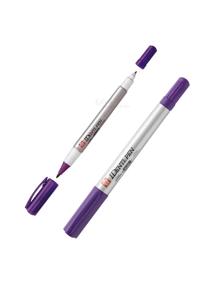 Rotulador permanente Sakura Identi Pen purpura con doble punta para trazos finos y precisos. Ideal para escribir, marcar y detallar sobre papel y superficies no porosas con secado rápido y alta resistencia. Perfecto para trabajos cuidados y duraderos.
