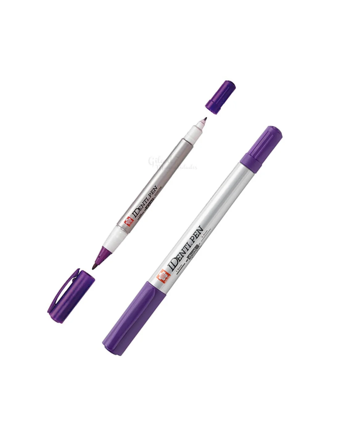 Rotulador permanente Sakura Identi Pen purpura doble punta 0.4 y 1.0 mm diseñado para marcar, escribir y detallar con precisión en múltiples superficies. Este rotulador multiusos permite trabajar tanto sobre papel y cartón como sobre superficies no porosas como metal, vidrio, plástico, madera o fotografías, ofreciendo un resultado limpio y duradero.