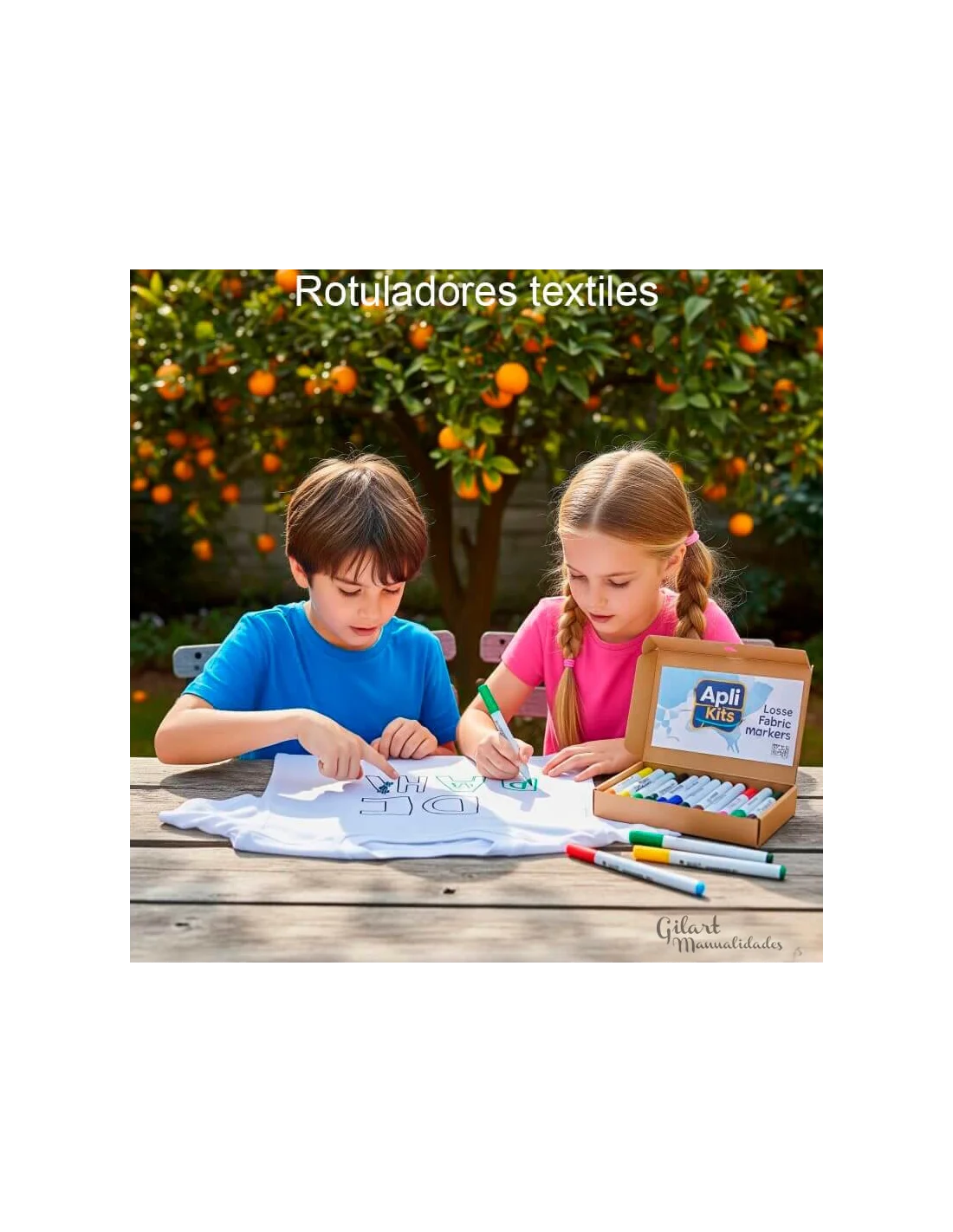 Rotuladores Textiles Apli Kids 10 Colores para Telas y Tejidos son la herramienta definitiva para dar vida a cualquier tejido, transformando prendas sencillas en piezas únicas. Diseñados para dibujar sobre algodón, lino o denim, incluyen 10 tonos vibrantes que invitan a la expresión artística. Su fórmula garantiza resultados permanentes que resisten lavados en frío (máximo 30°C). Perfectos para personalizar camisetas, mochilas o zapatillas. Para fijación perfecta, deja secar el dibujo 24 horas y plancha por el revés sin vapor. Ideales para actividades escolares, talleres creativos y proyectos familiares. Da rienda suelta a tu imaginación con rotuladores que combinan seguridad, facilidad de uso y resultados profesionales en cada creación textil. 👕